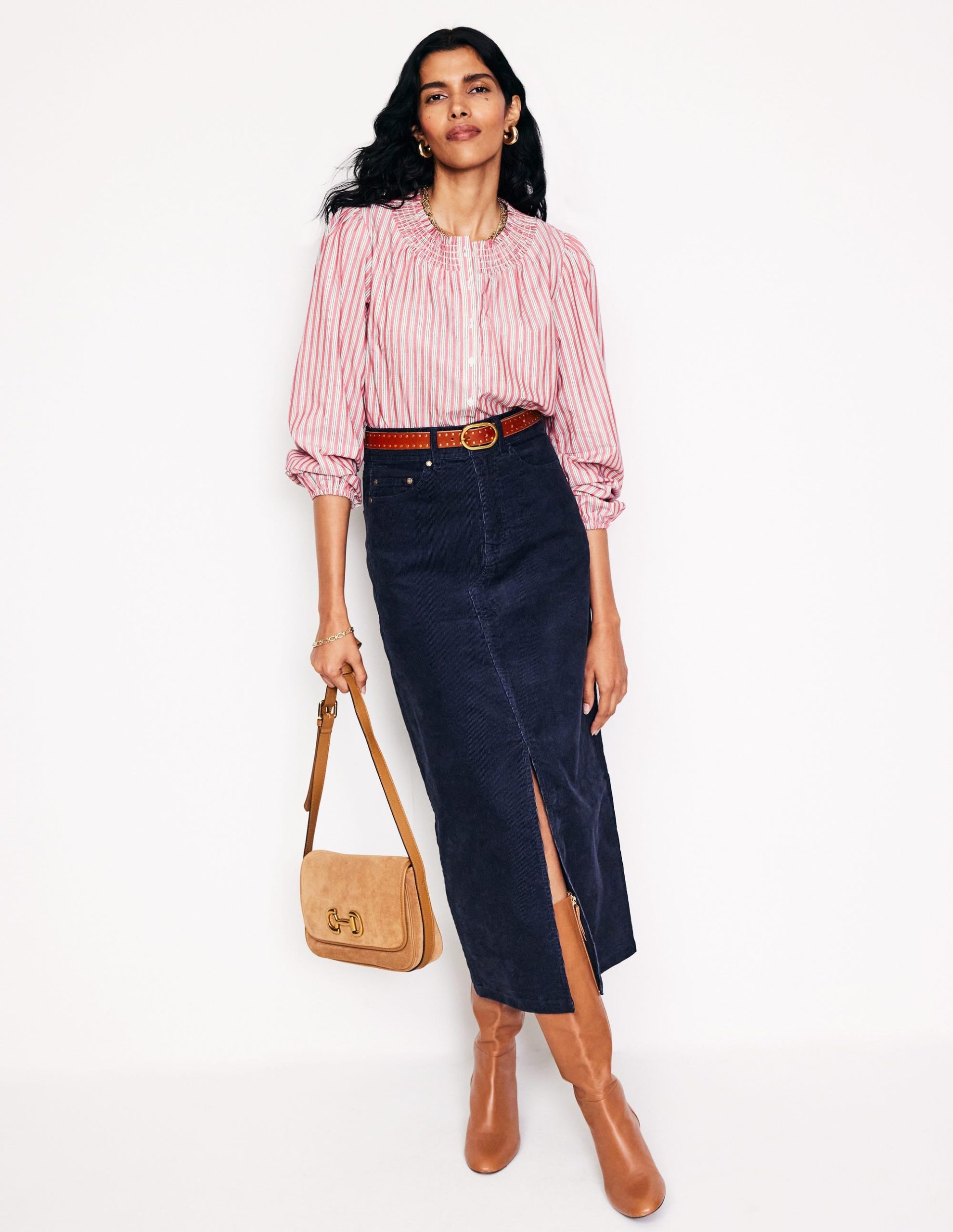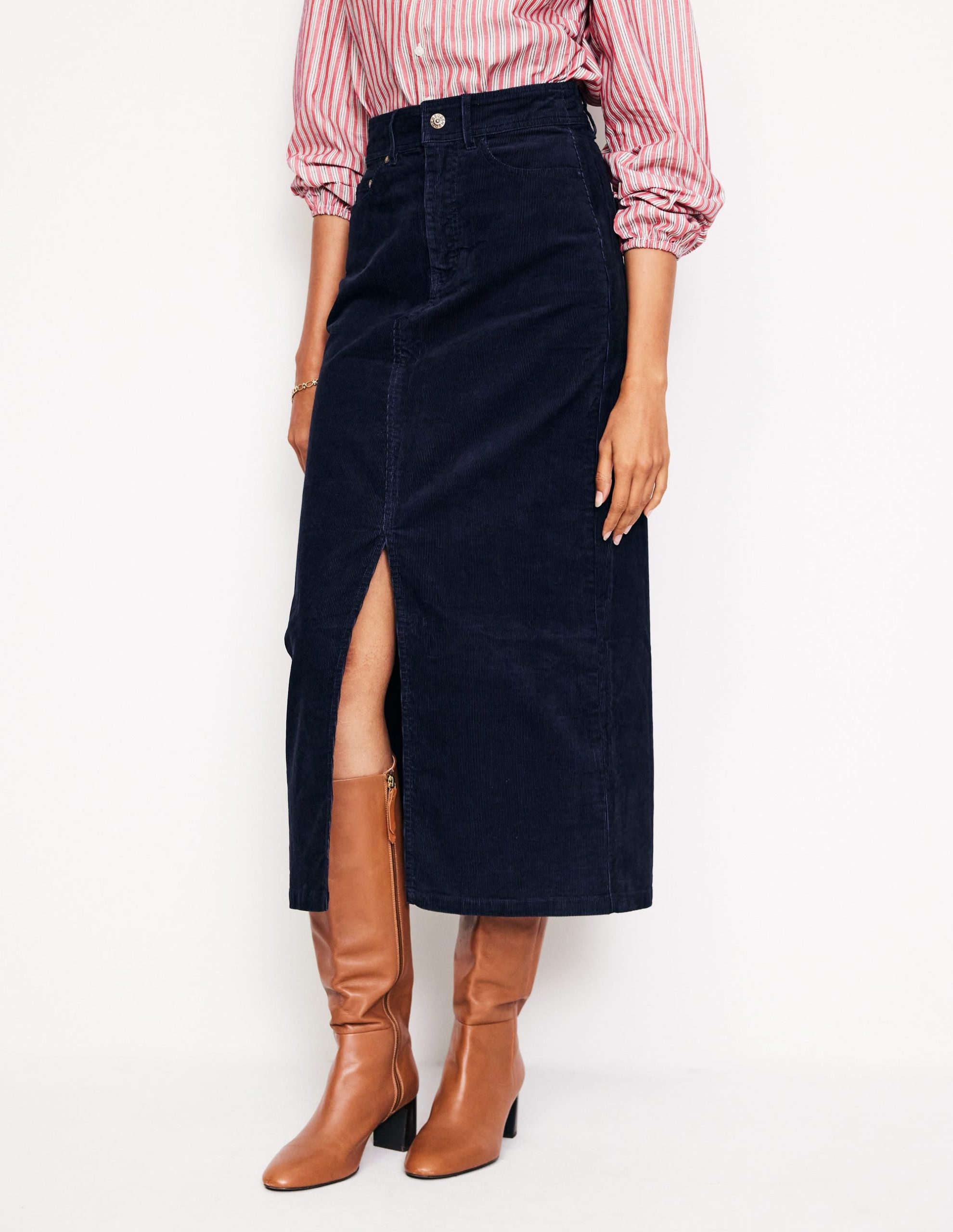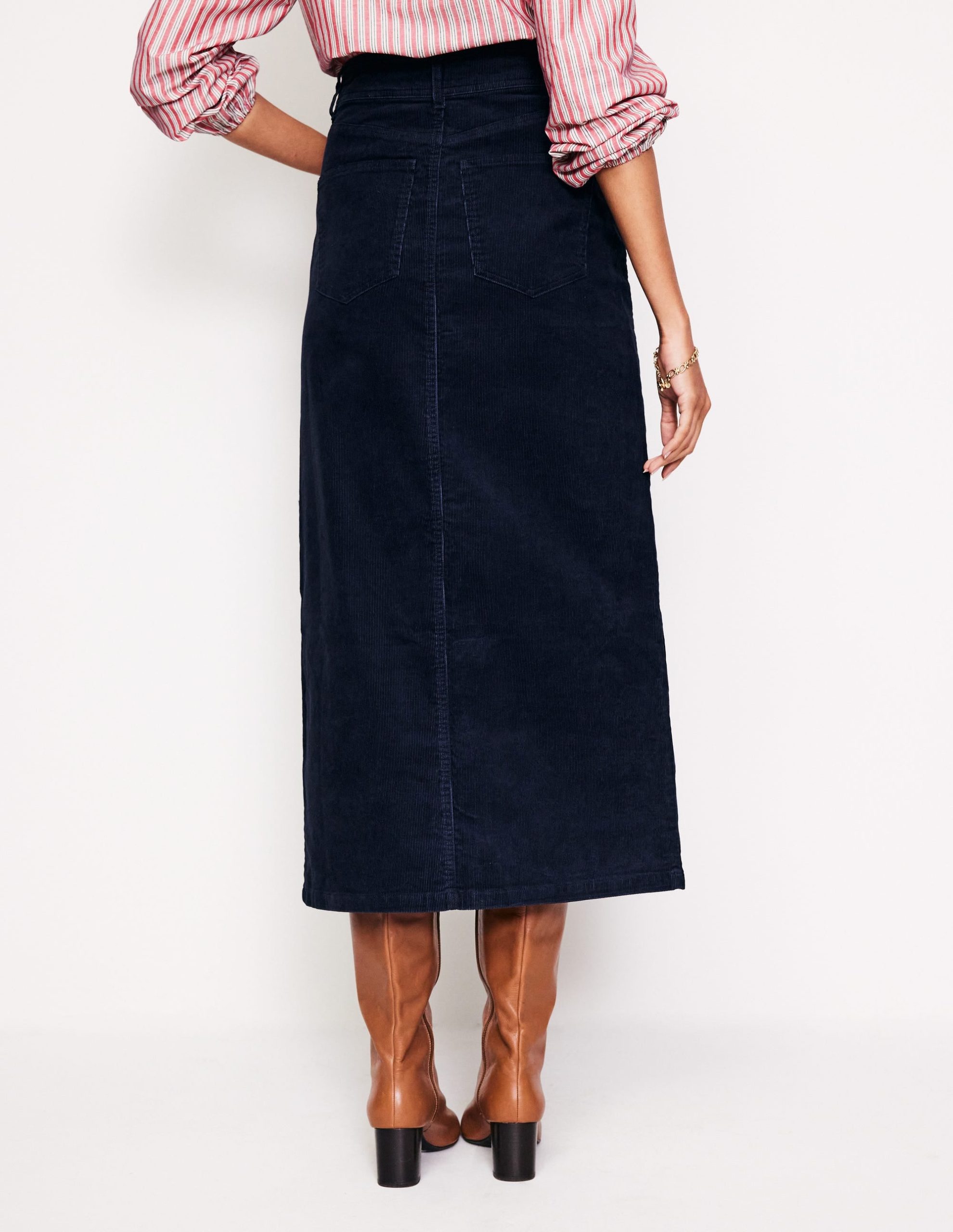 A soft cord skirt in a maxi length that makes it perfect for in-between weather. Pair with everything from T-shirts to cosy knits.