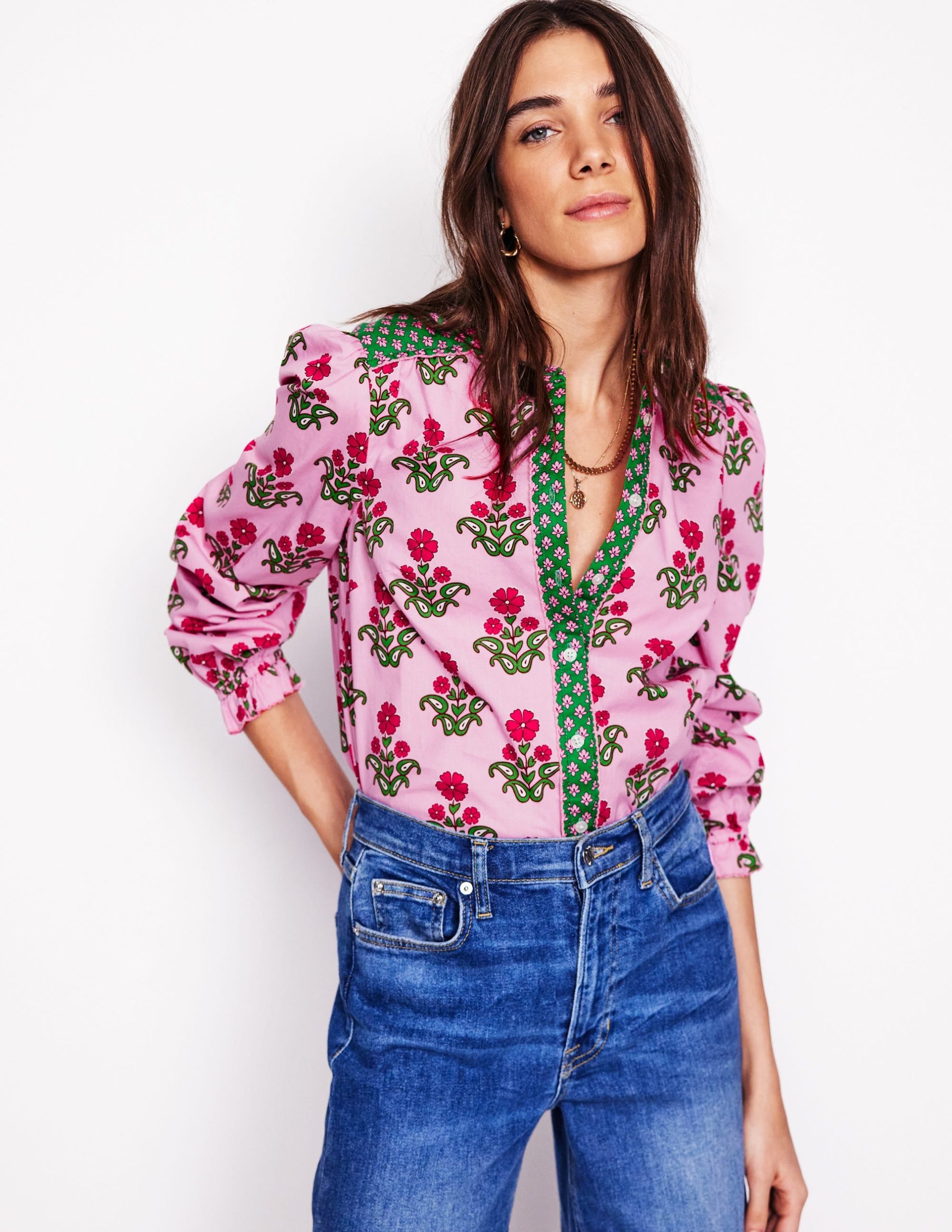 Arabella Cotton Blouse-Meadowsweet Pink. Pansy Stamp