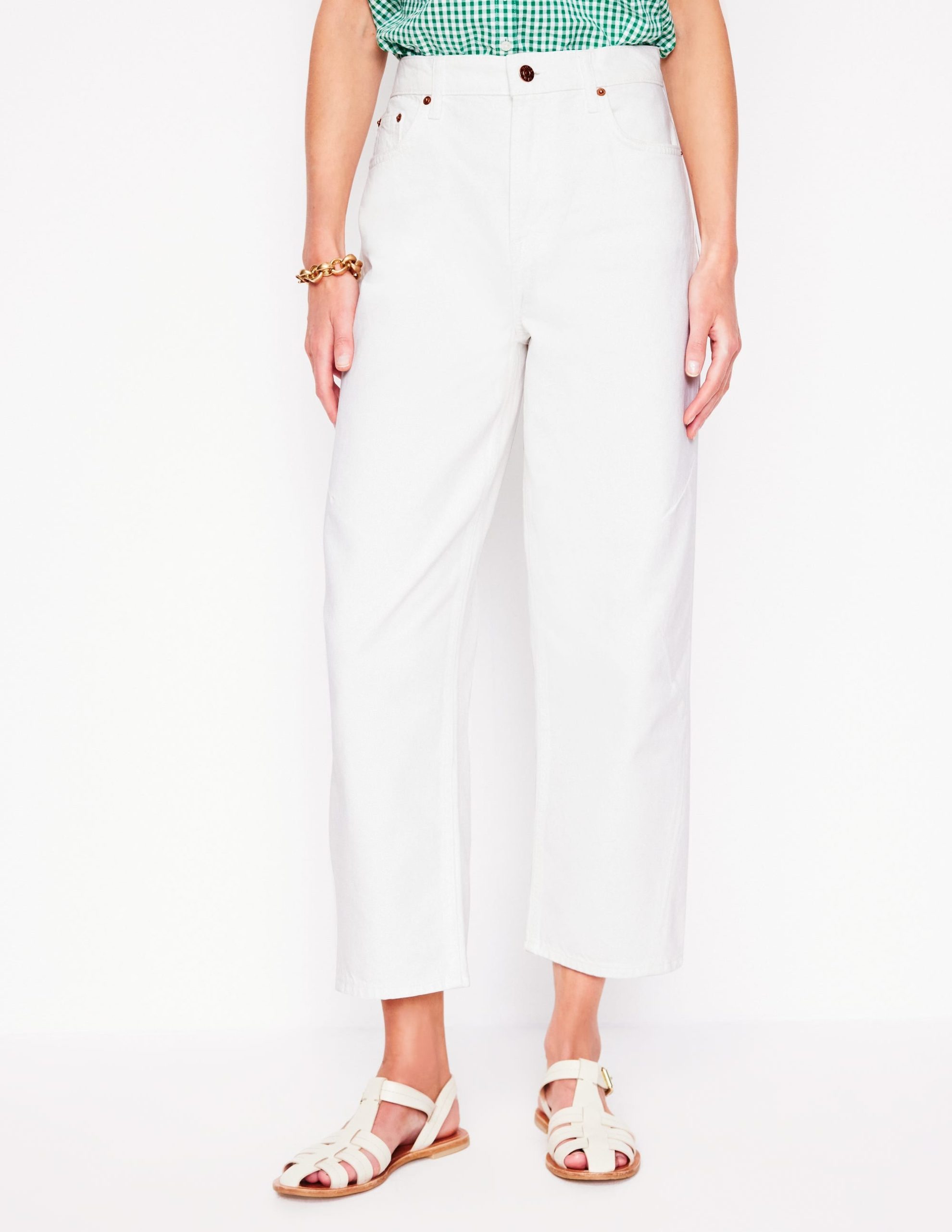 Now barrel leg jeans are a thing it’s time to sway you away from straight-leg styles even momentarily. It’s all about off-duty comfort and this pair suit all shapes.