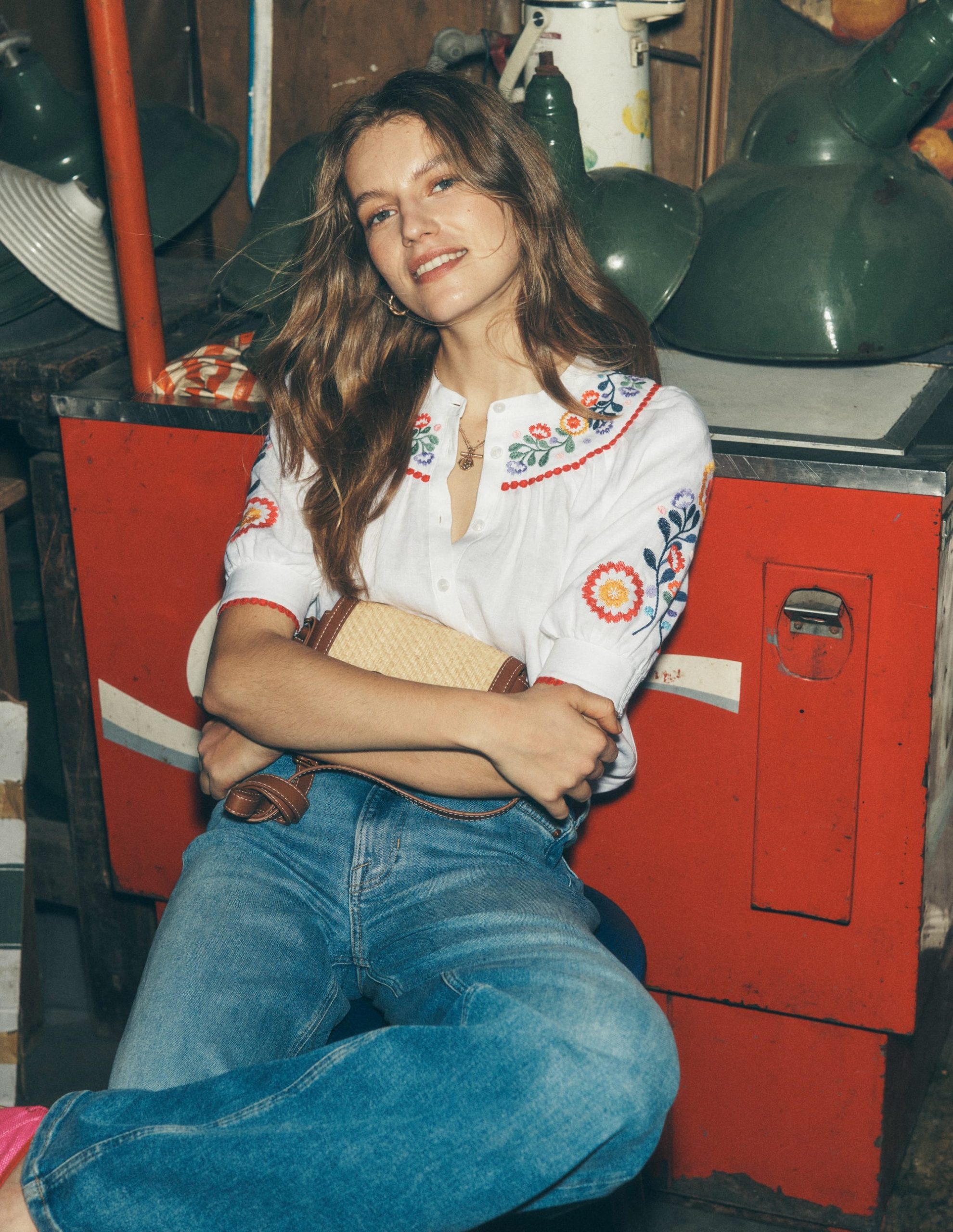 Bea Linen Top-White. Embroidery