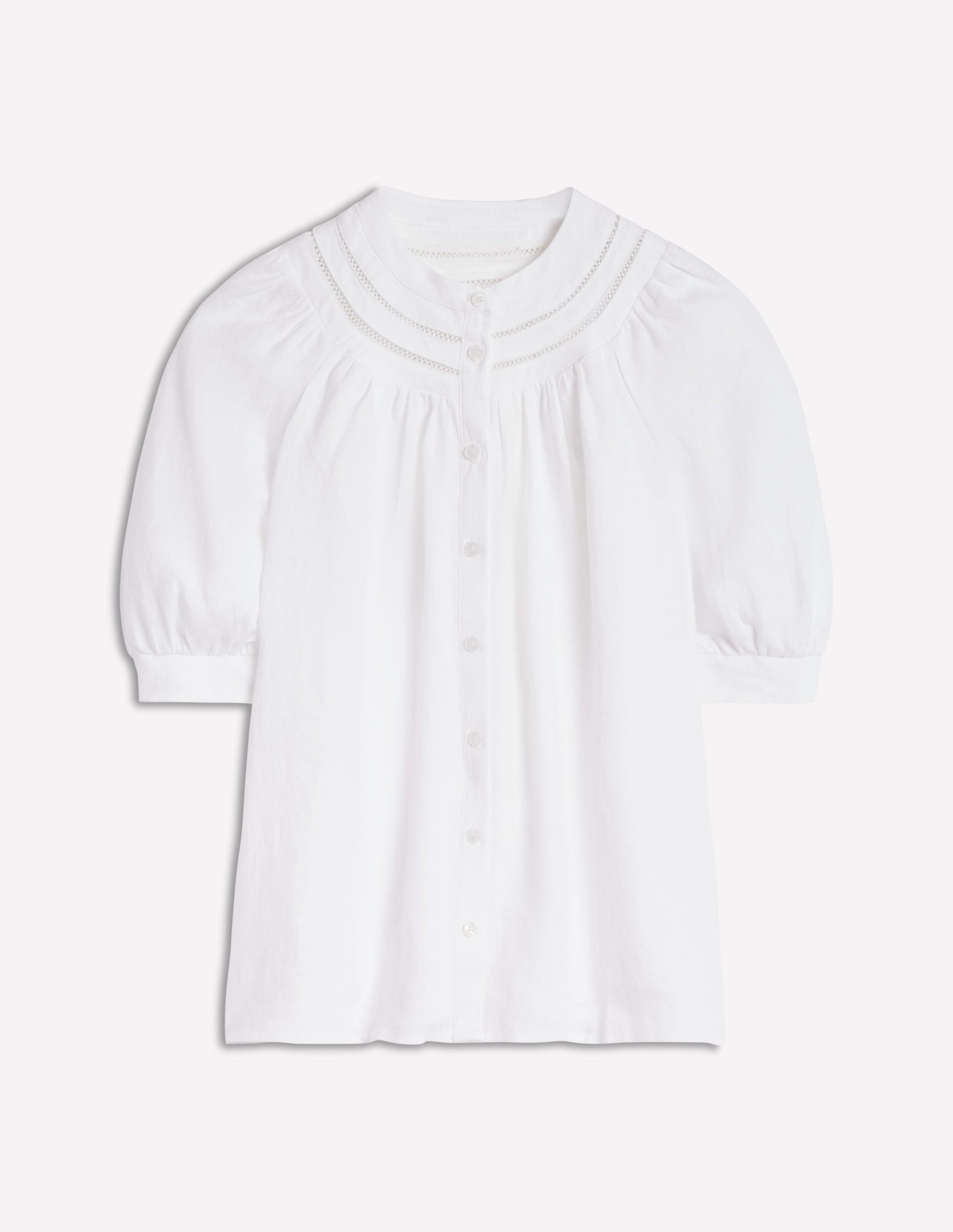 Our Bea linen top has puff sleeves with smocking at the cuffs and intricate stitching along the neck. Ready for any outing. it’s an effortless way to make it look like you’ve. well. made an effort.