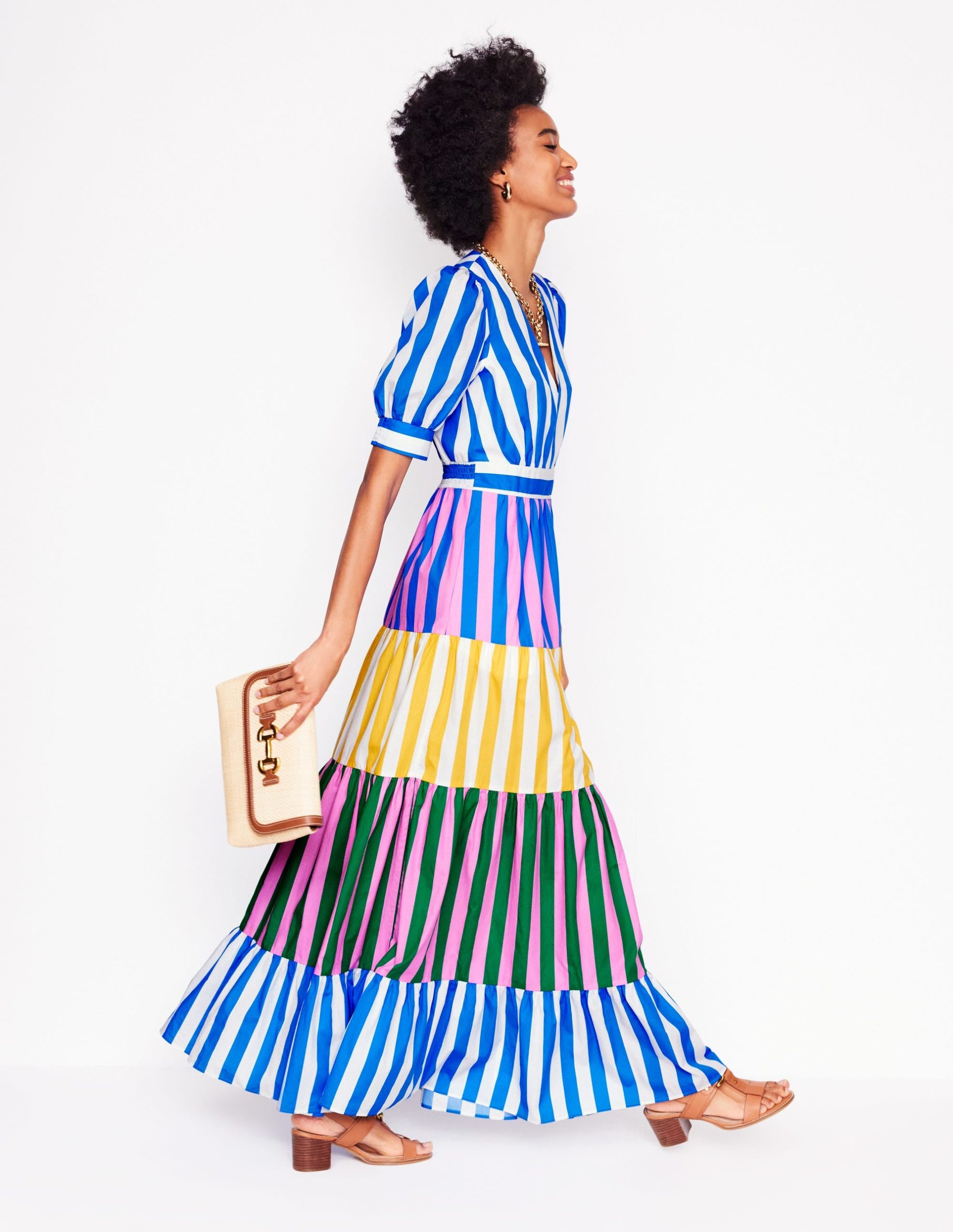 Bella Puff Sleeve Maxi Dress-Kingfisher Blue Stripe