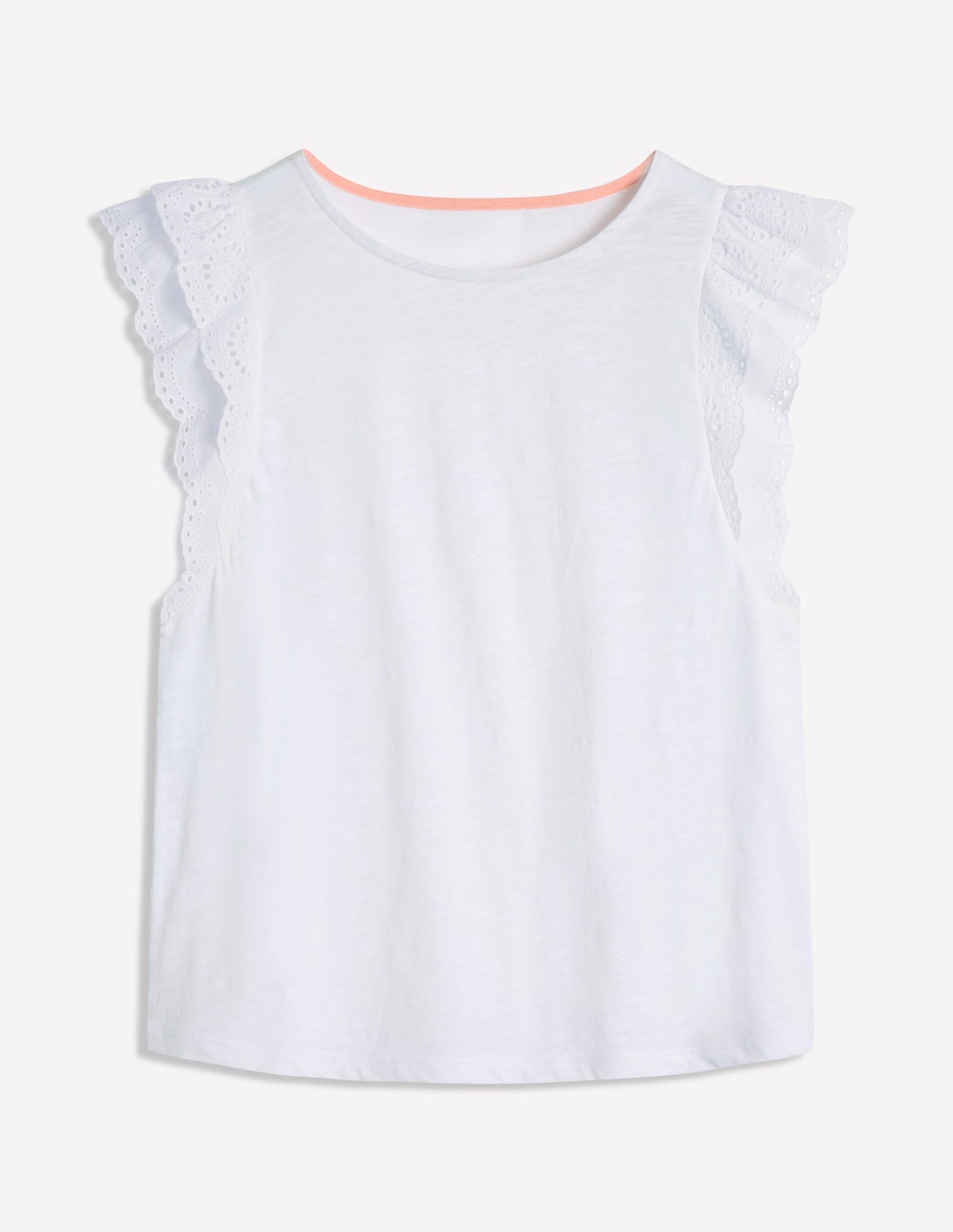 Delicate broderie take the Belle top from basic to blockbuster in one fell swoop.
