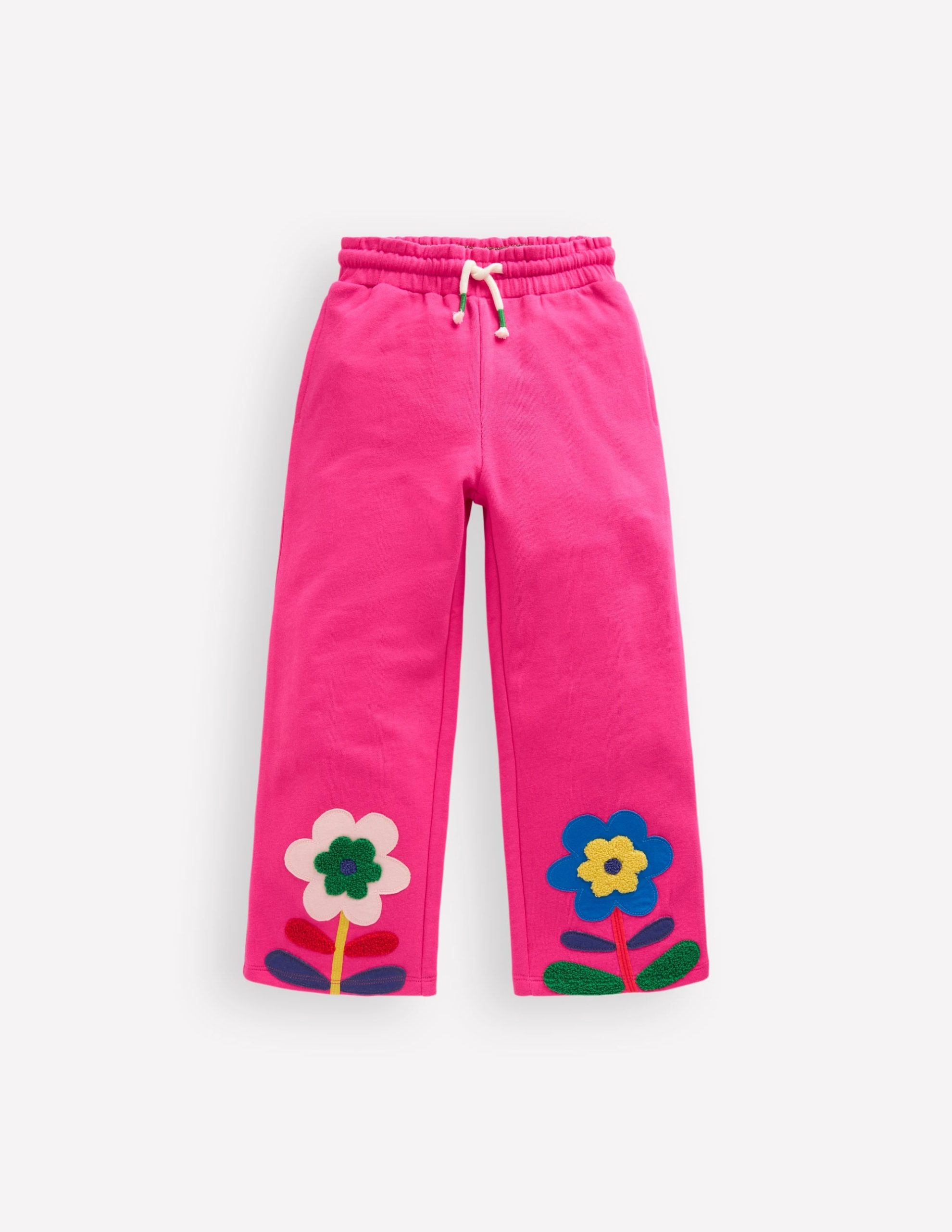 Bobbie Appliqu?? Joggers-Raspberry Pink Flowers