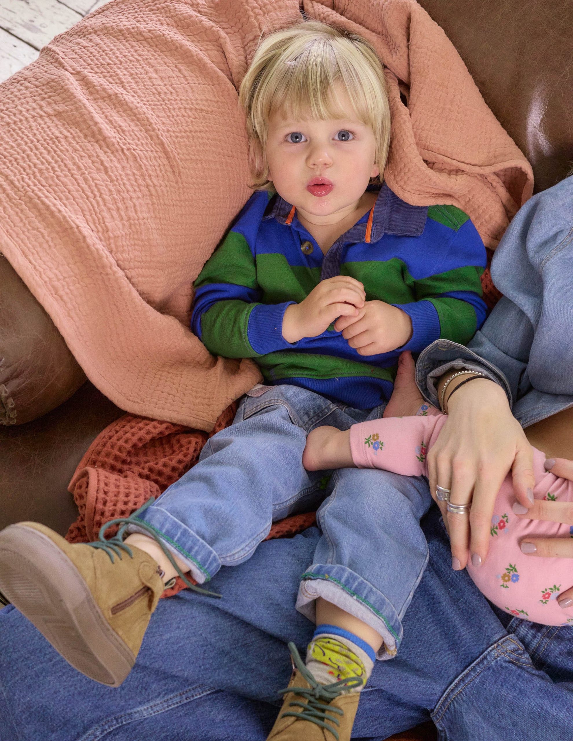Big stripes and bold colours make this sweatshirt a playful choice for chillier days. The cord collar and ribbed cuffs help keep out pesky chills so nothing gets in the way of exploring.