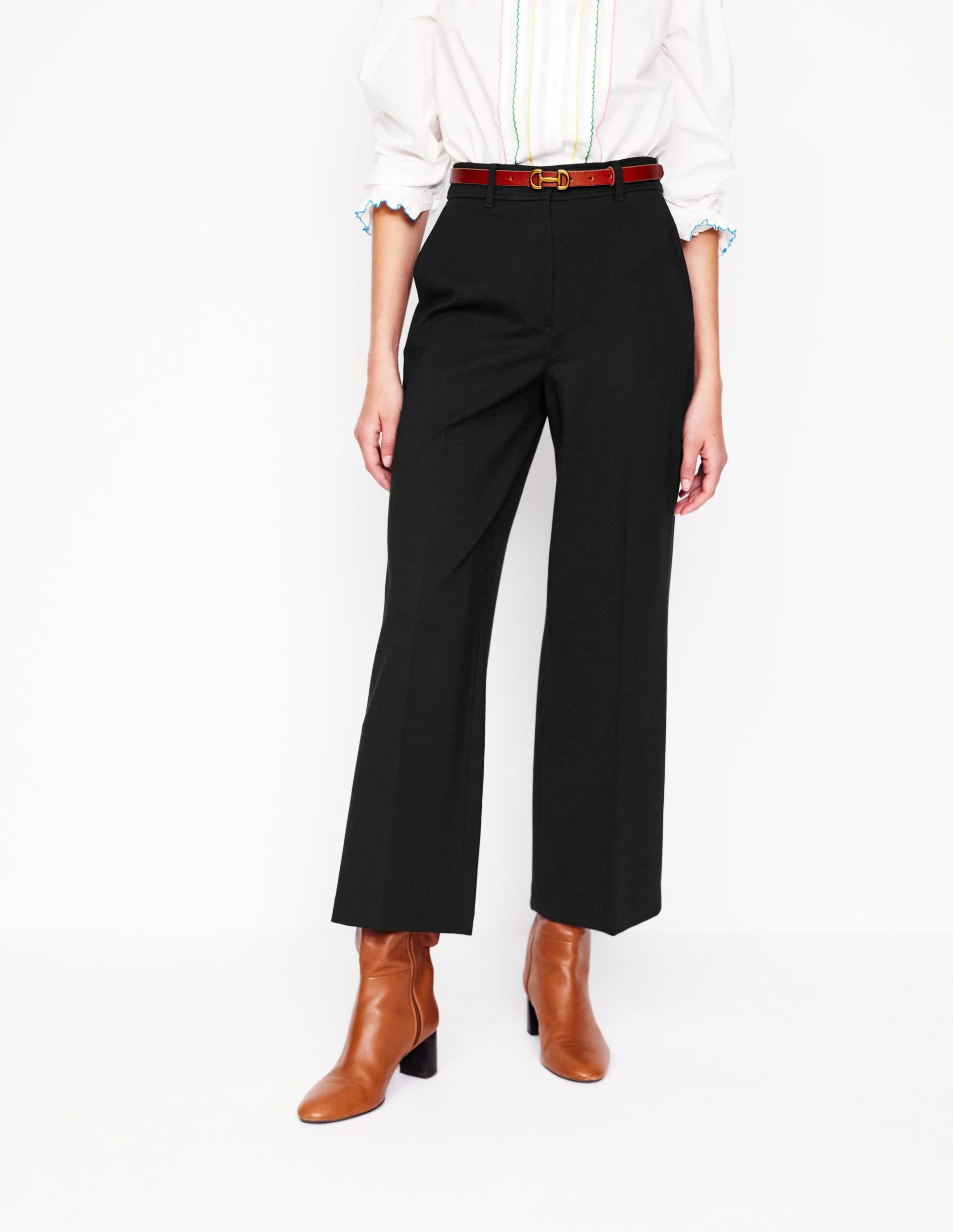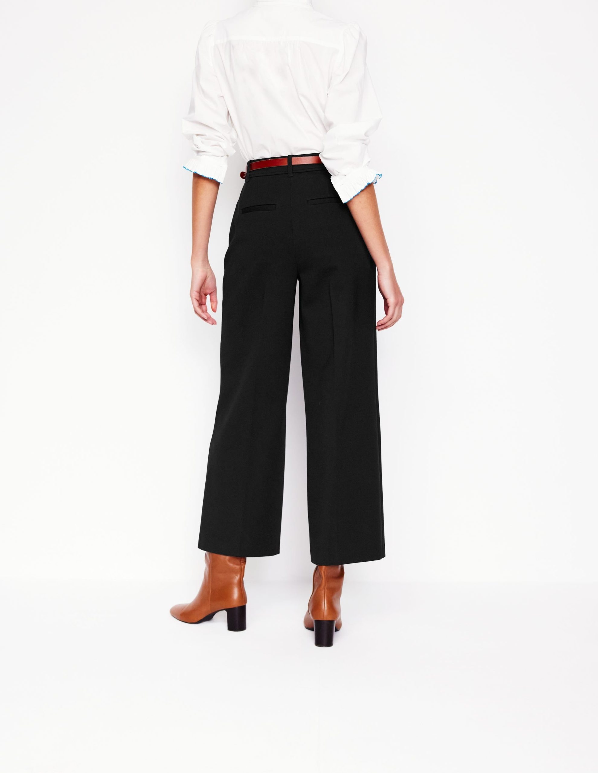 Pair these cropped. wide leg trousers with flats or loafers for a stylish smart-casual look.