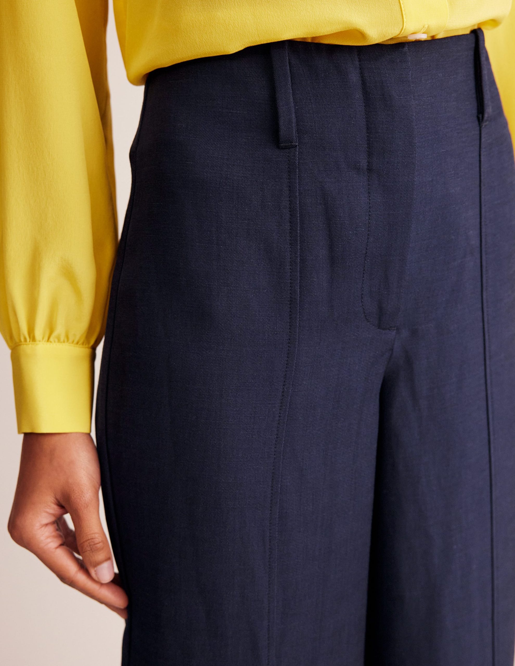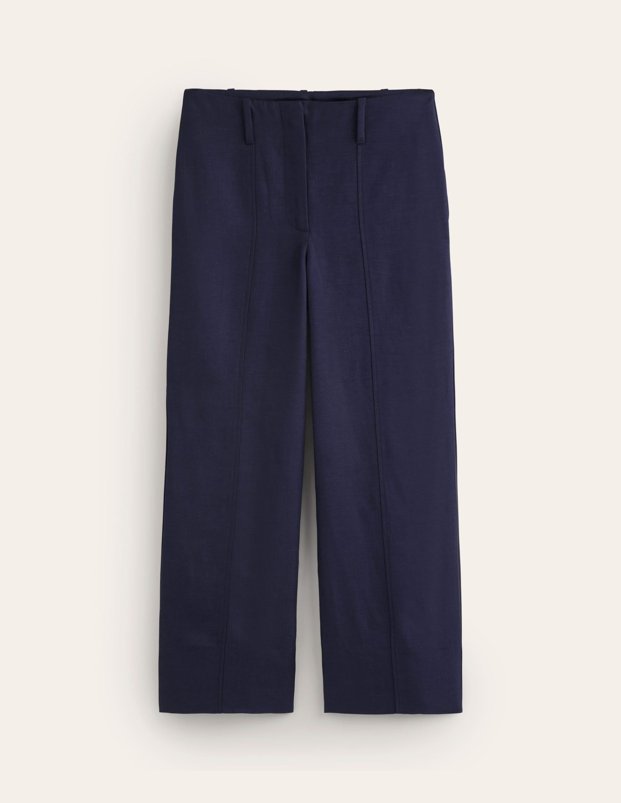 A pair of mid-rise. straight-leg cropped trousers in a smart-but-comfortable twill fabric. Choose from a versatile navy or unmissable yellow.