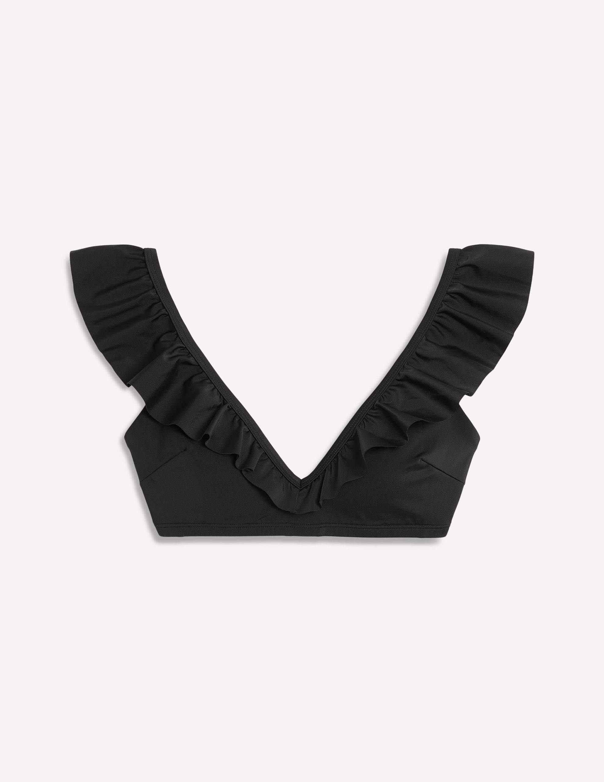 Basking on golden sands or sipping a cocktail in the shade? Our Evia bikini top makes either work thanks to its ruffled V-neck and eye-catching print.