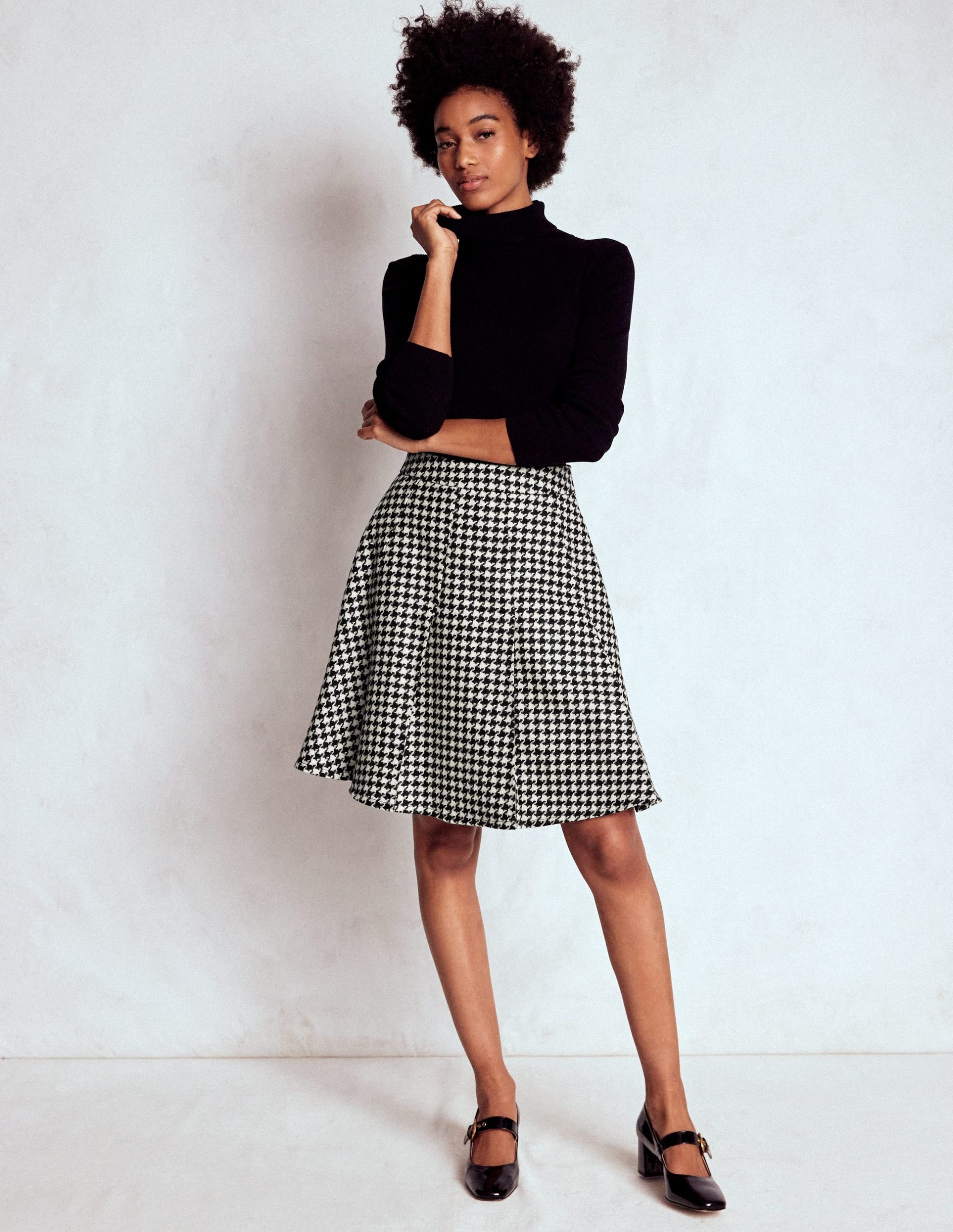 Is there anything more British than a flippy wool skirt? Skimming over the hips before kicking out just above the knees. this style calls for boots or ballet flats and a penchant for crustless sandwiches.