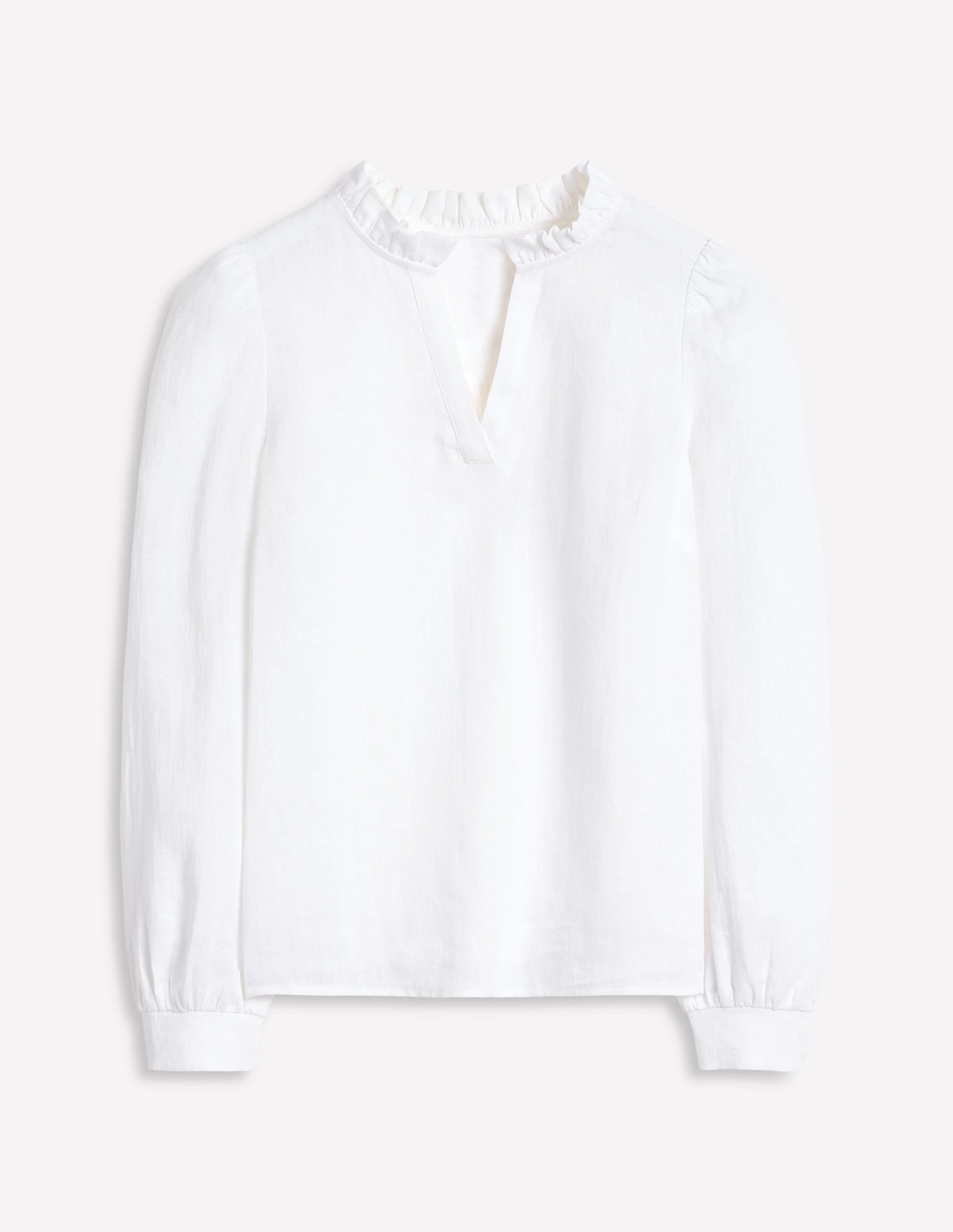 The simplicity of our Grace linen top is offset by its frilled neck detail. Team with wide-leg trousers. or denim shorts if the sun’s out.