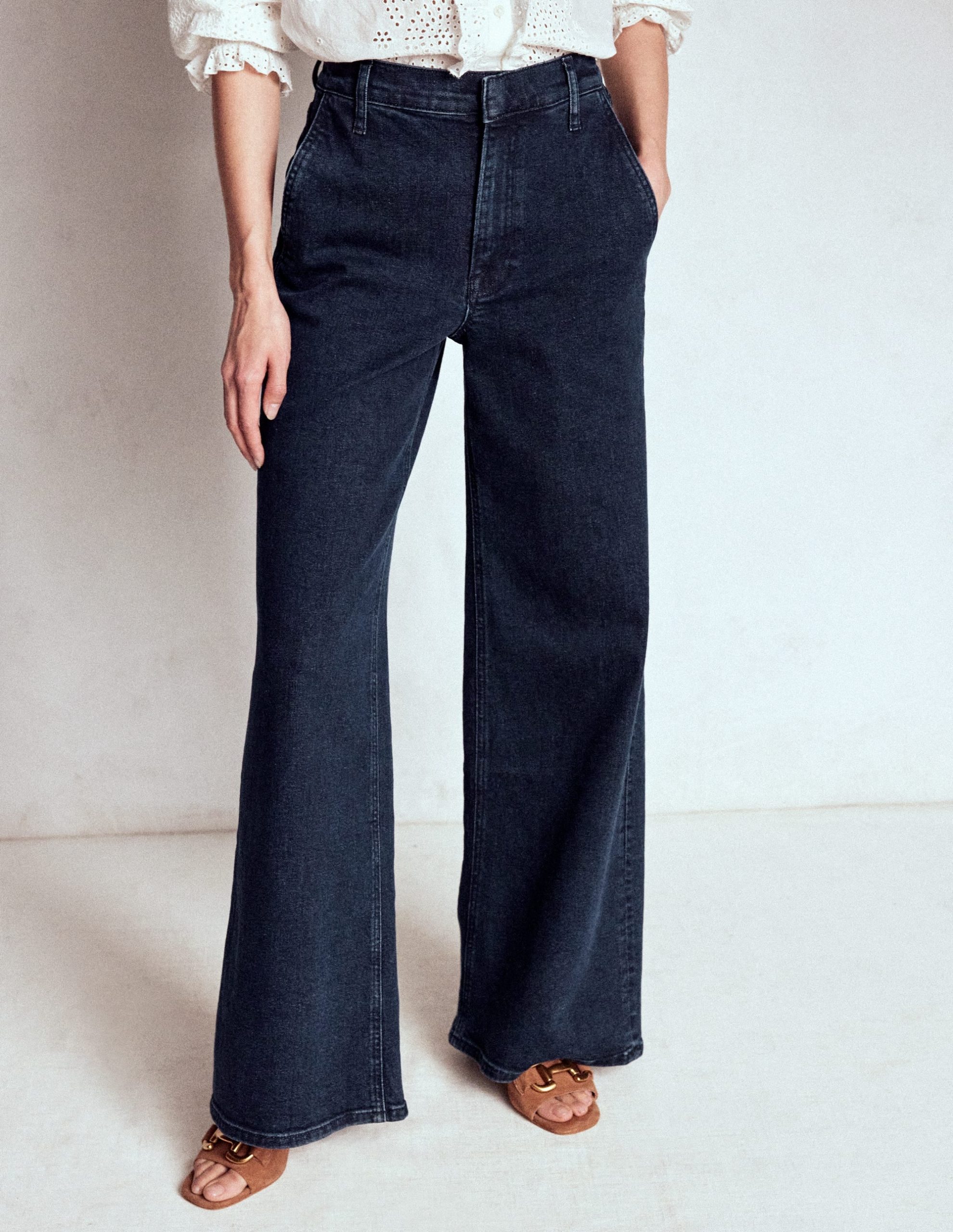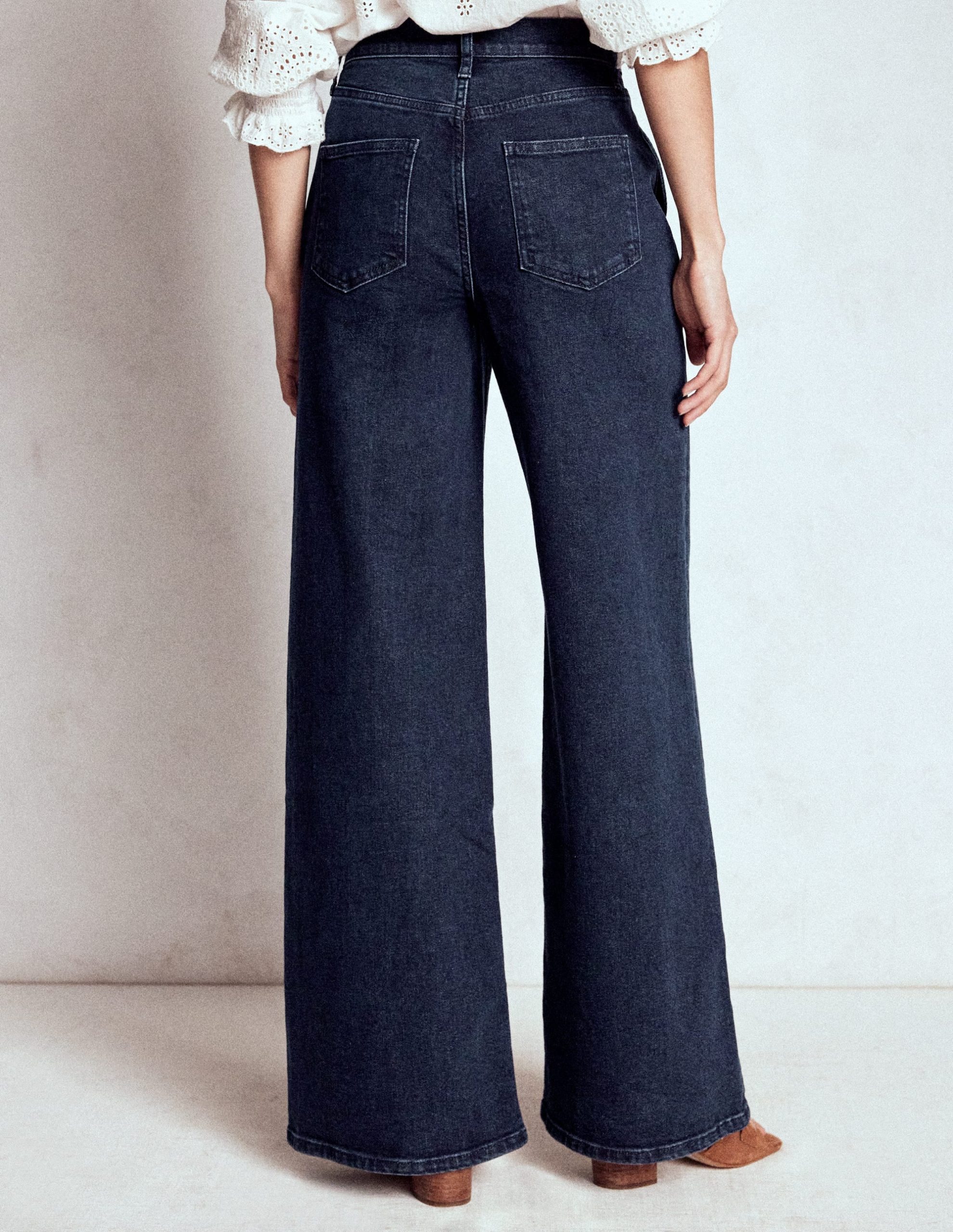 Pulling on these wide-leg jeans will feel as good as hearing your favourite song come on the radio. With a little stretch. a flattering high-rise cut and a touch of ’70s charm you can dress them up or down.