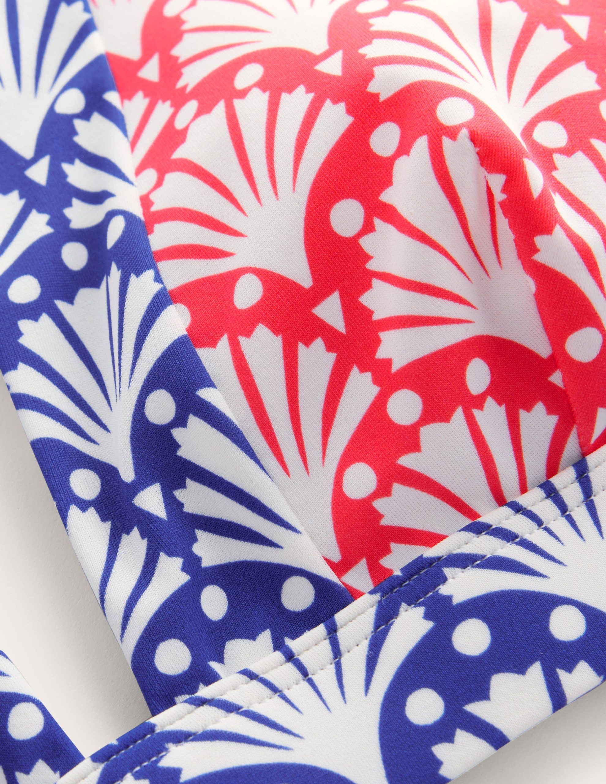 Contrasting patterned or block-coloured panels create the Ithaca halterneck bikini top’s flattering features. Cut in a deep V. the tie straps ensure your perfect fit.