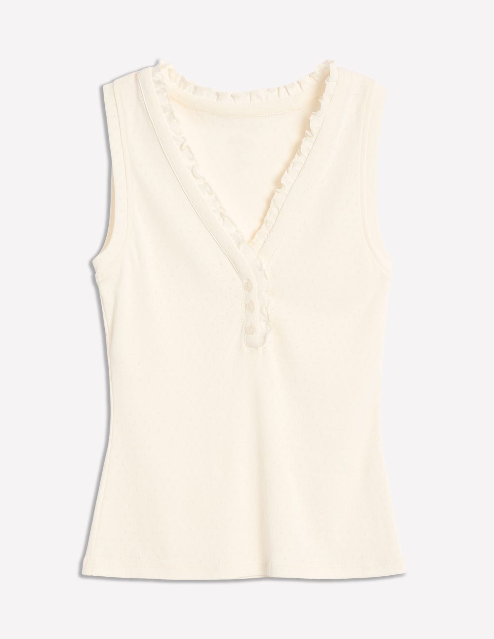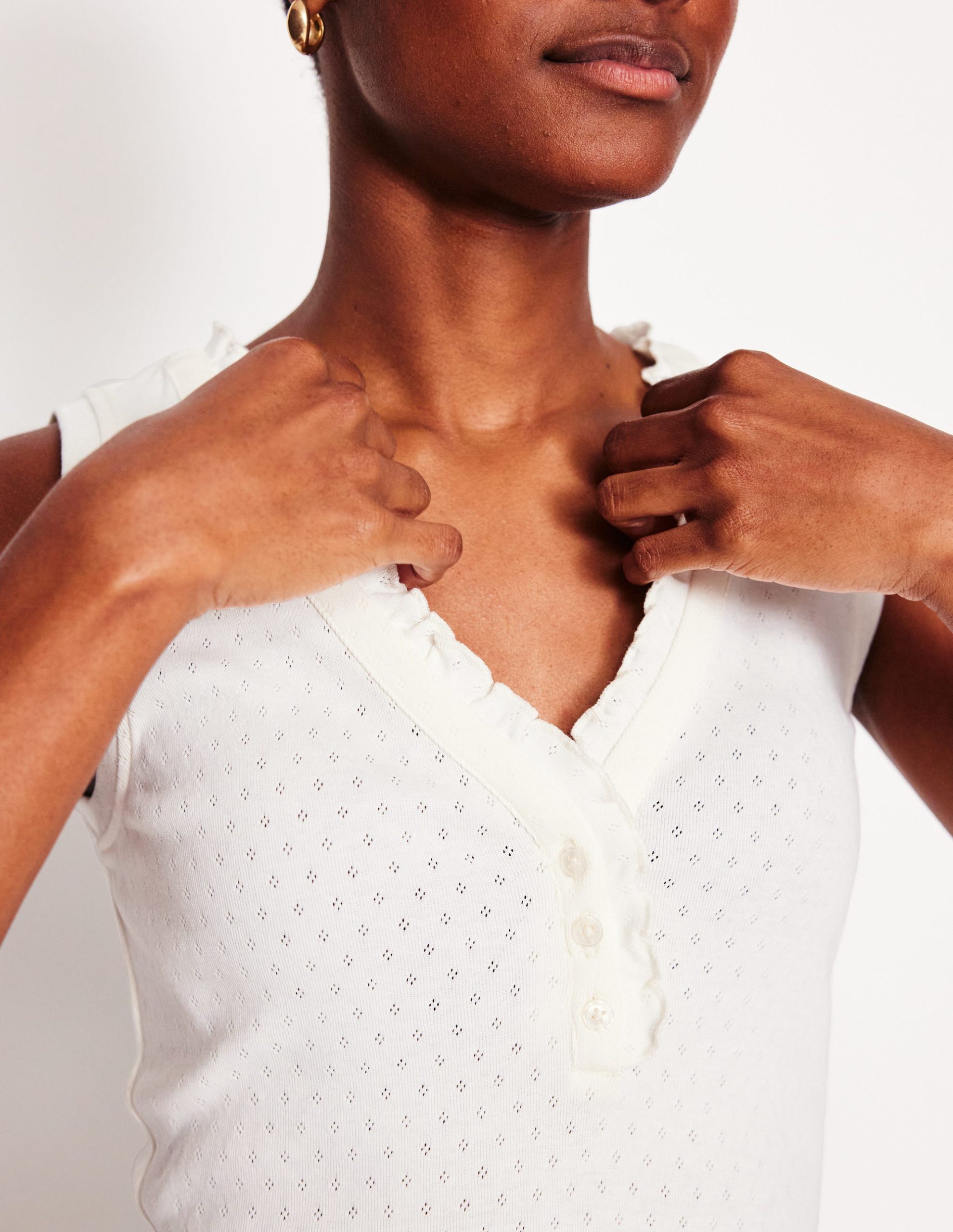 Soft. breathable cotton and a frilled neckline make our Henley pyjama vest a stylish bedtime choice.