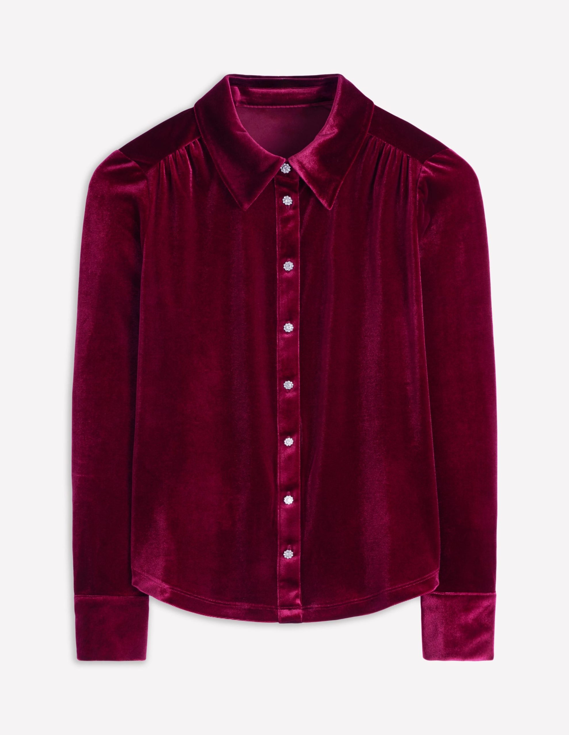 For diary-filled days and nights ahead don’t forgo comfort over glamour. This versatile velvet shirt gives both in a luxurious party-ready style. We’ve added jewelled buttons so you sparkle bright like your conversation.
