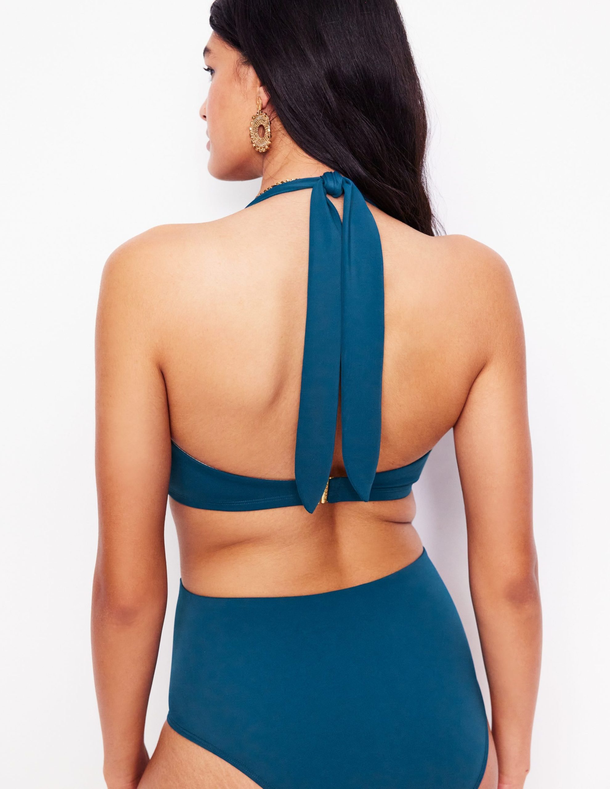 Channel deity-level confidence with our Kythira bikini top (Goddess Aphrodite is said to have been born on the Greek island) thanks to ruching. adjustable halterneck straps and fixed cups add support. Don’t worry. there’s bikini bottoms to match??