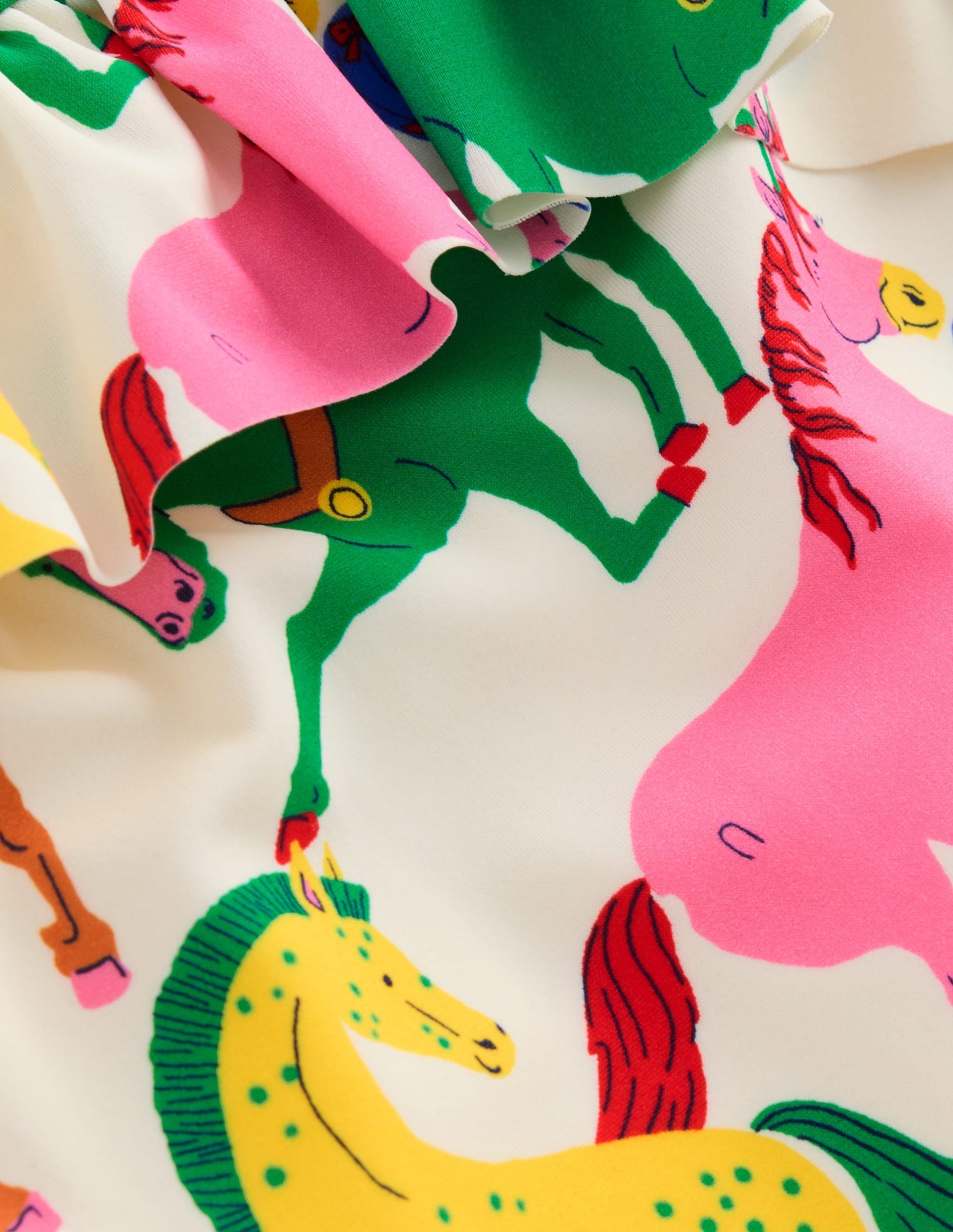Lila One Shoulder Swimsuit-Multi Rainbow Horses
