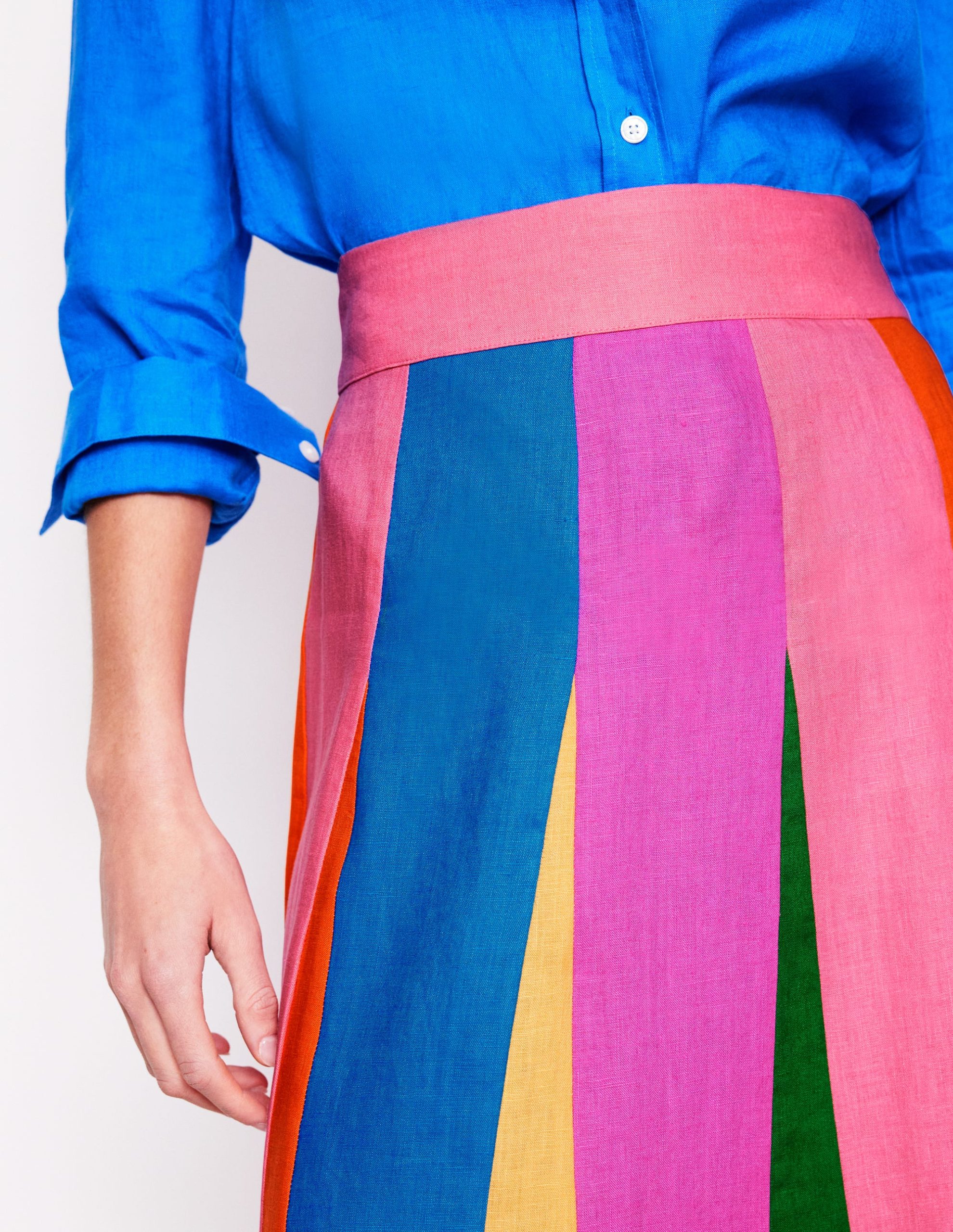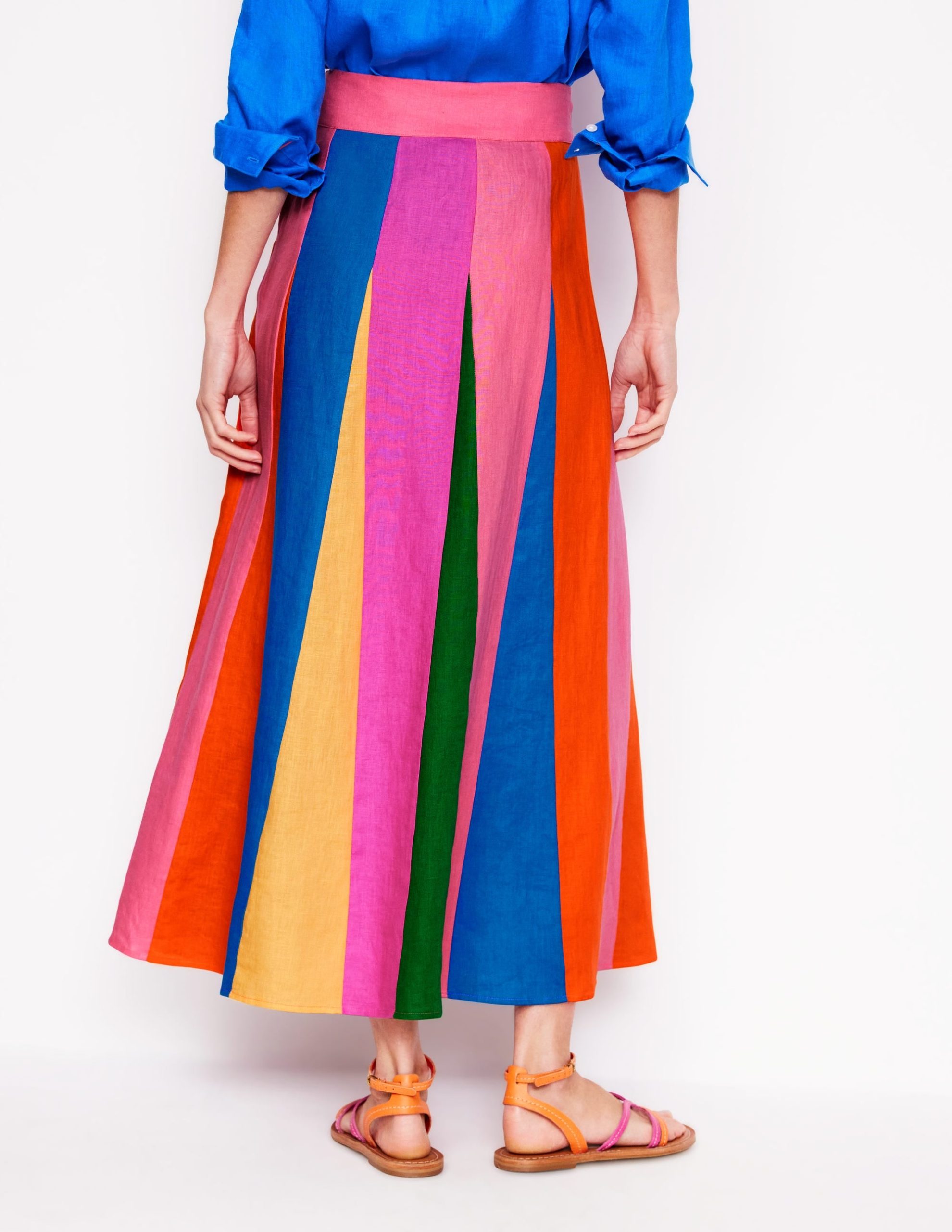 Linen Flippy Maxi Skirt-Multi Colourblock