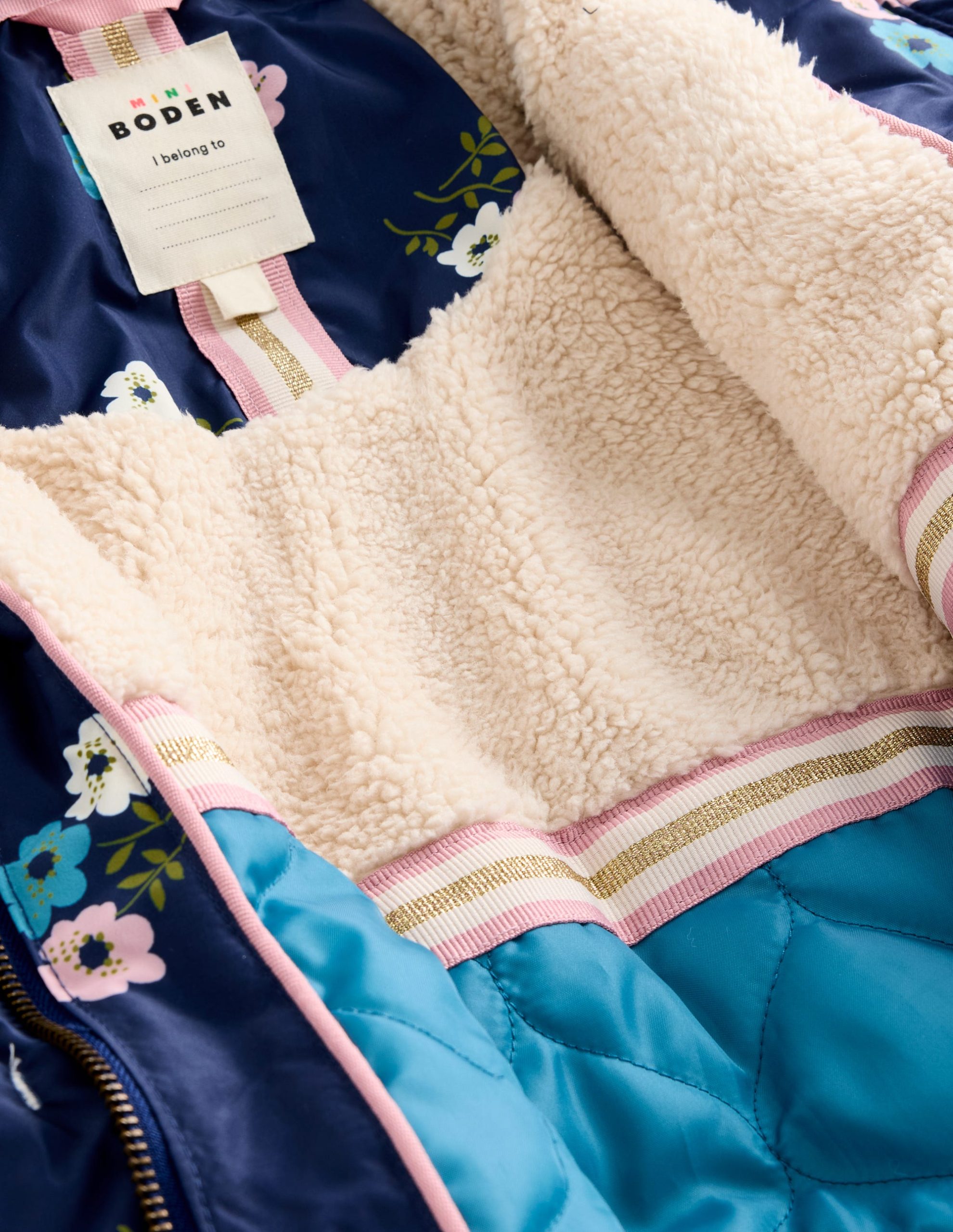 Longline Padded Coat-College Navy Posy