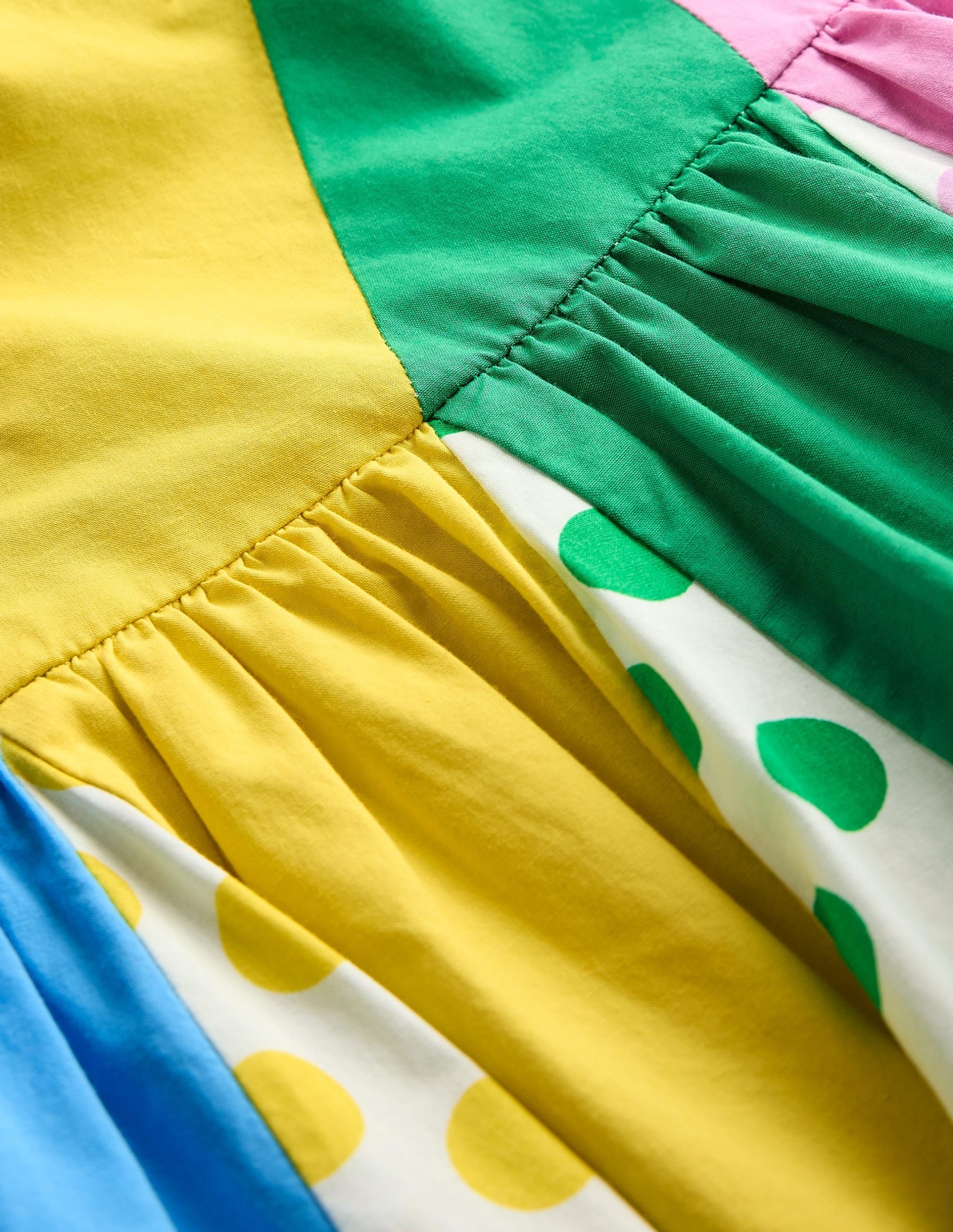 This spectacular one shoulder party dress mixes rainbow stripes with dotty design to say one big bright hello to summer. Mini’s will love it so much they won’t want to take it off.