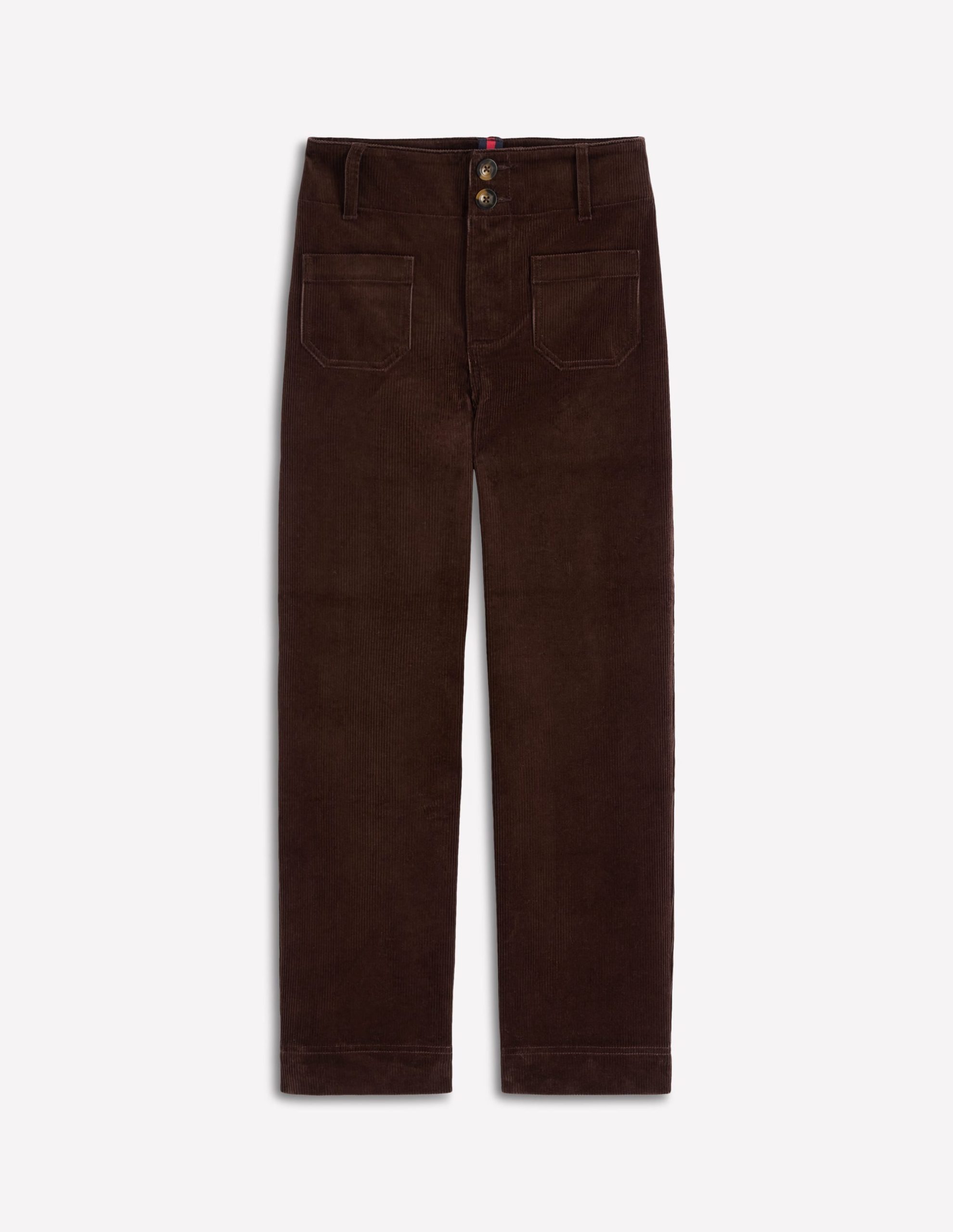 Our Primrose cord trousers are crafted with a little stretch and they flare into a flattering wide leg shape. The cropped length allows you to ease into the new season and still show off those new loafers.