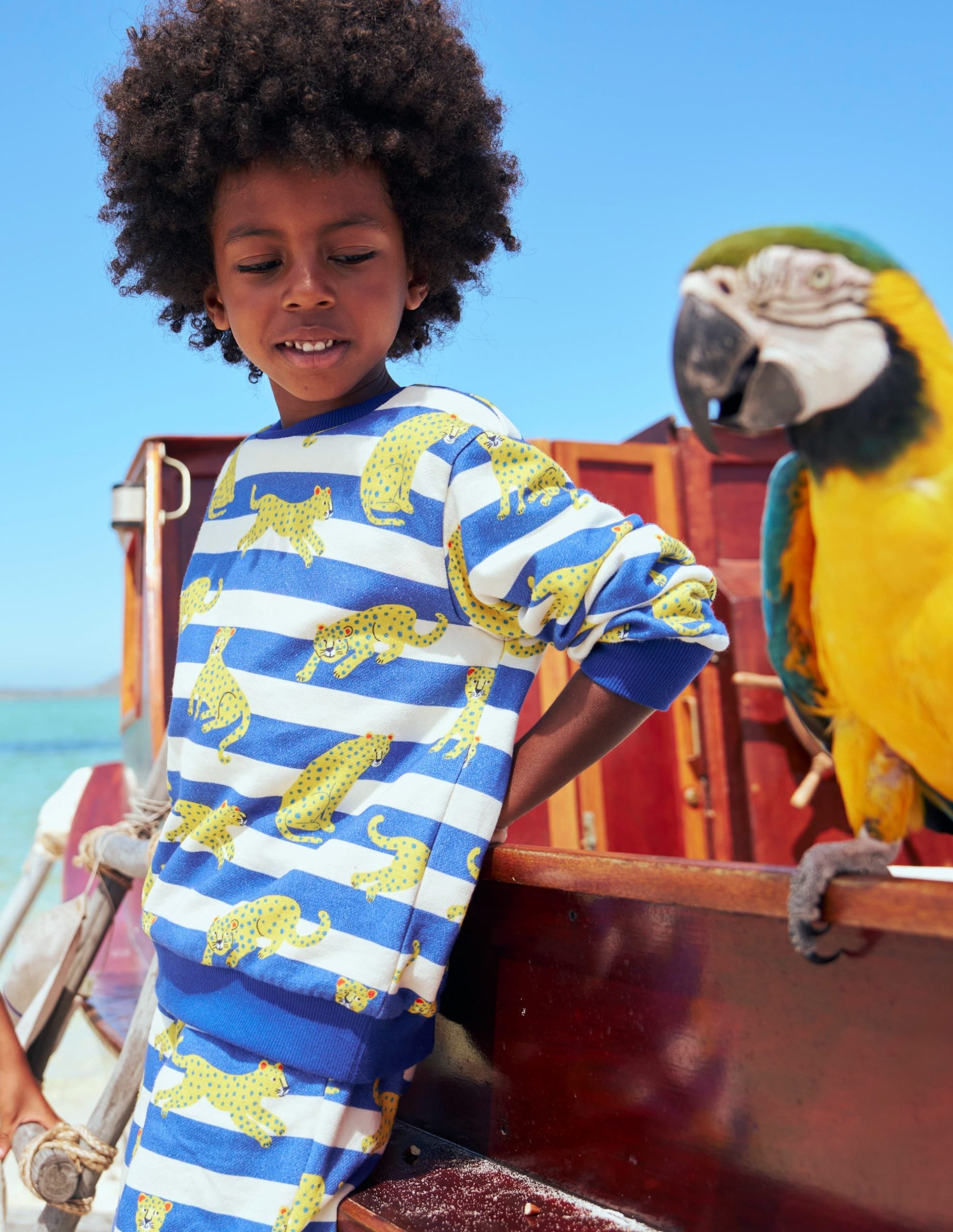 A sweatshirt primed for playdates. Soft jersey cotton provides a cosy backdrop for a selection of characterful prints.