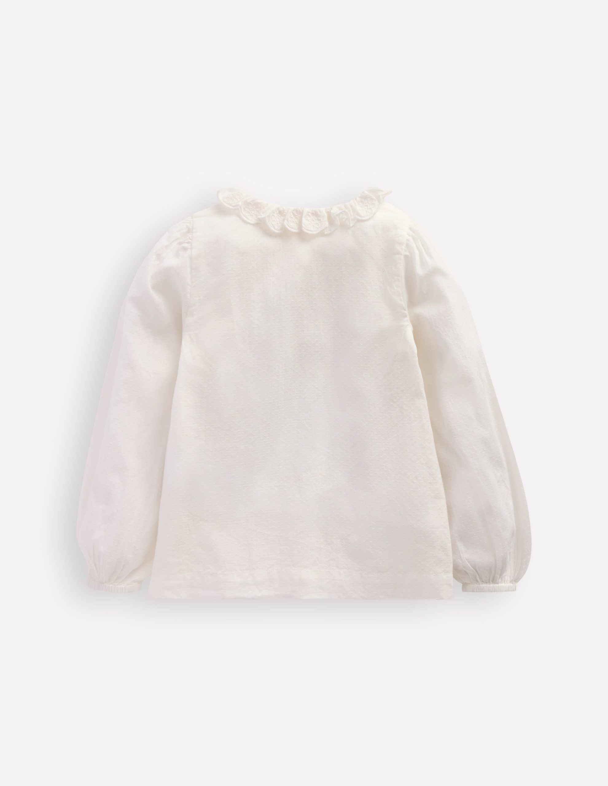 Scalloped Collar Smocked Shirt-Soft Ivory
