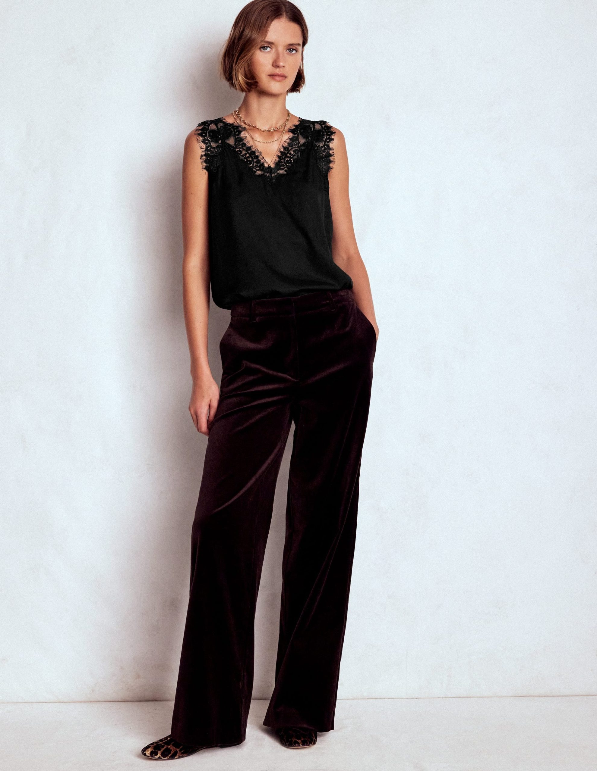 With its slinky silk blend and delicate lace trim this versatile cami top will look great peeking out from under a tailored blazer. Alternatively. layer it over (yes. over) a long-sleeved top for a touch of ’90s-inspired texture.