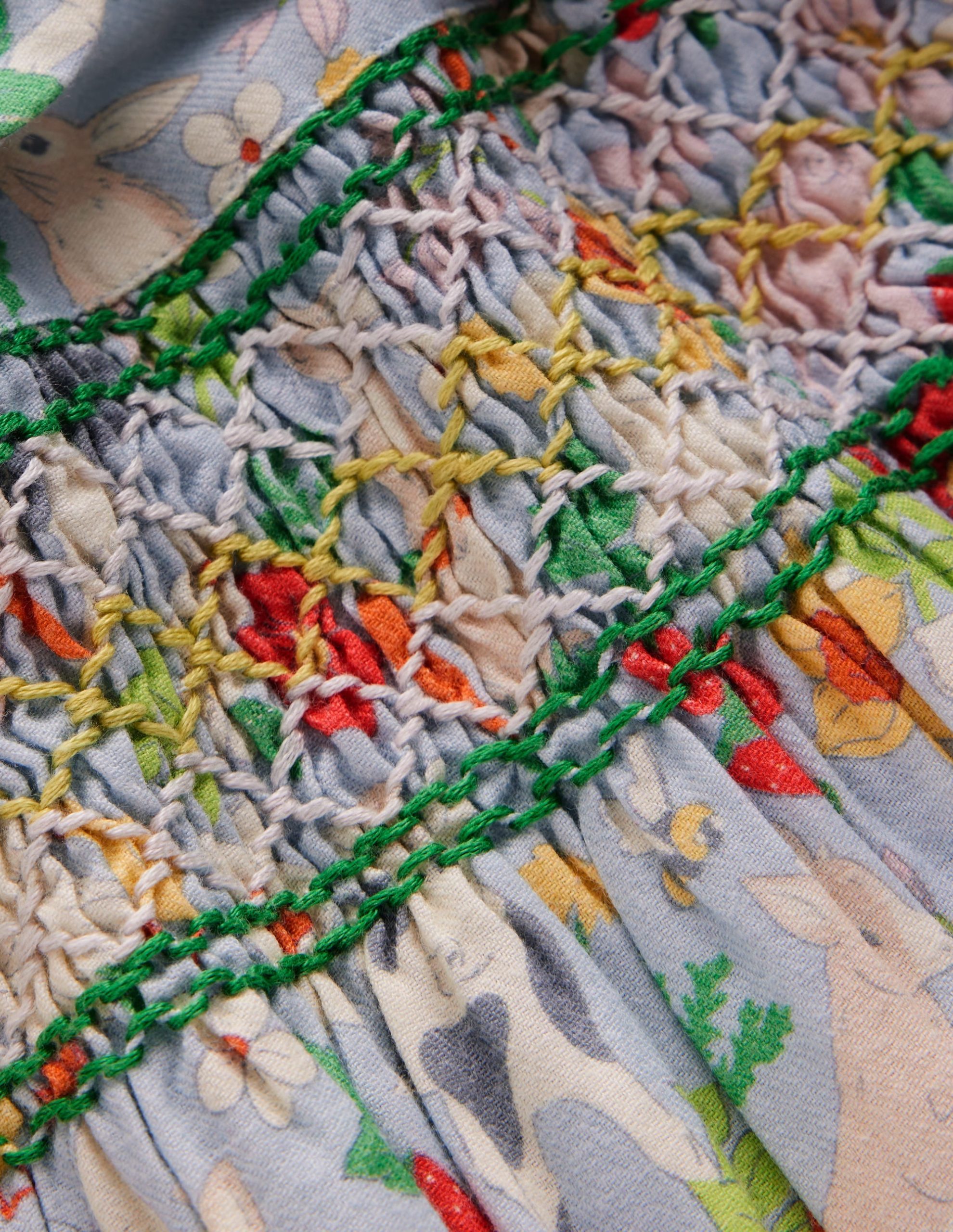 Practical features and an endearing design combine in one to make this romper. It’s cut from soft cotton. stitched with hand smocking and topped with a Peter Pan collar. And how could we forget the elasticated leg openings and easy-fasten poppers for easy changing.