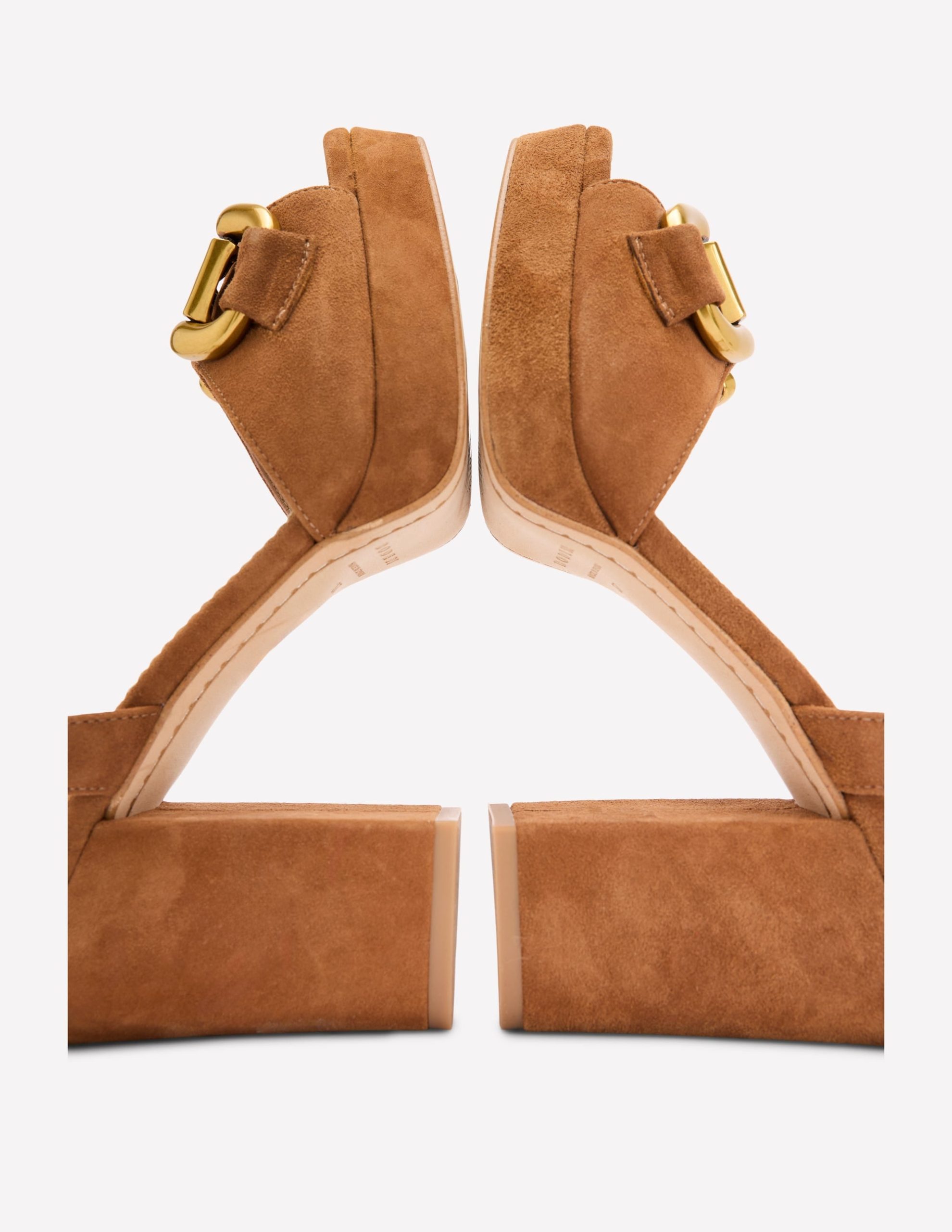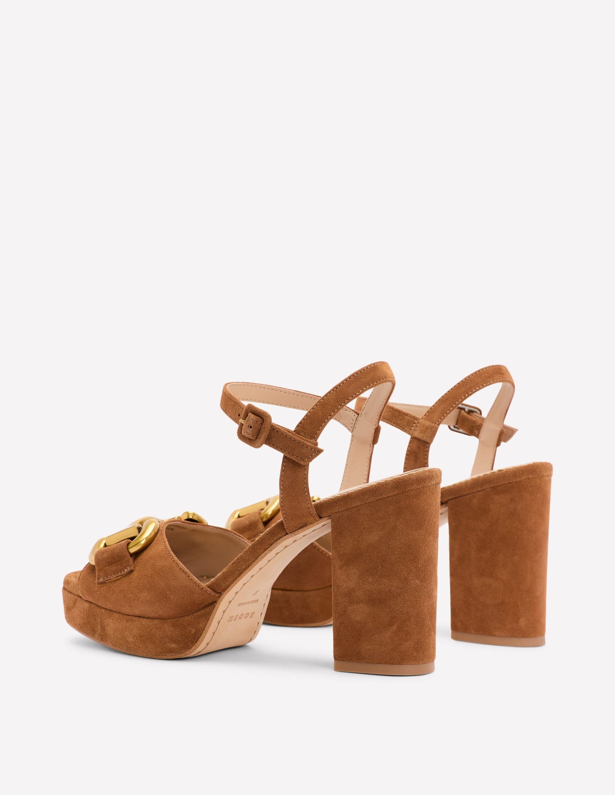 A chunky platform sole balances the towering block heel on these snaffle-detailed sandals. They’re a true wear-forever pair.
