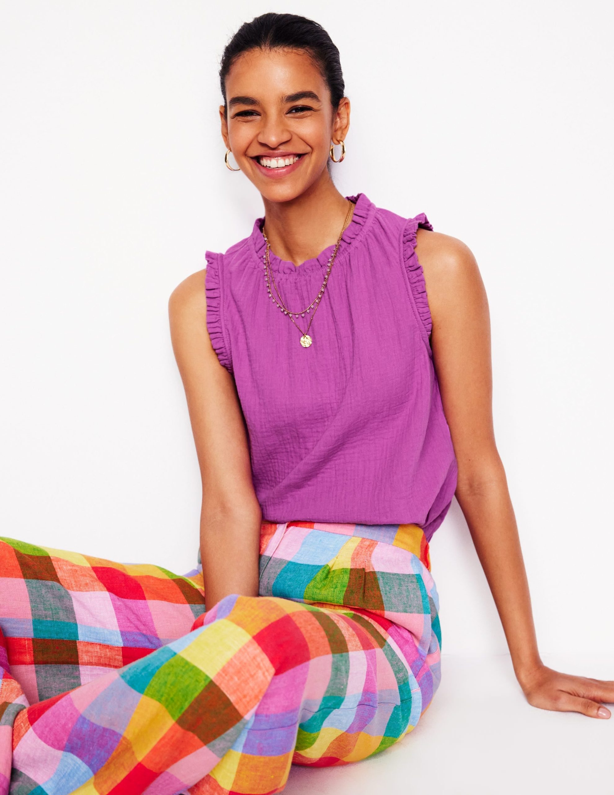 Sophie Ruffle Double Cloth Top-Foxglove Purple