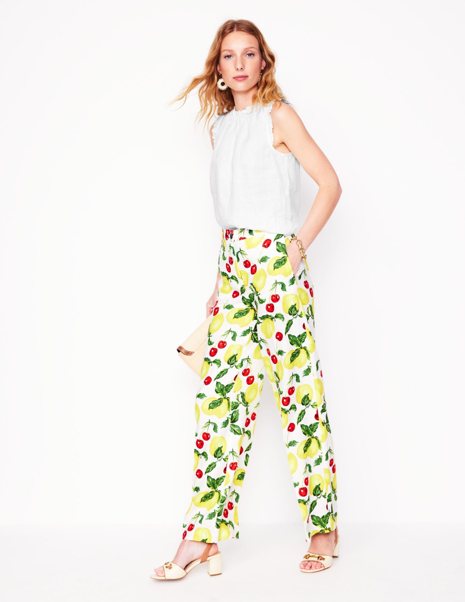 Our Sophie top is floaty and spun from cool. breathable linen. We’ve added ruffles at the shoulders and neck. too.
