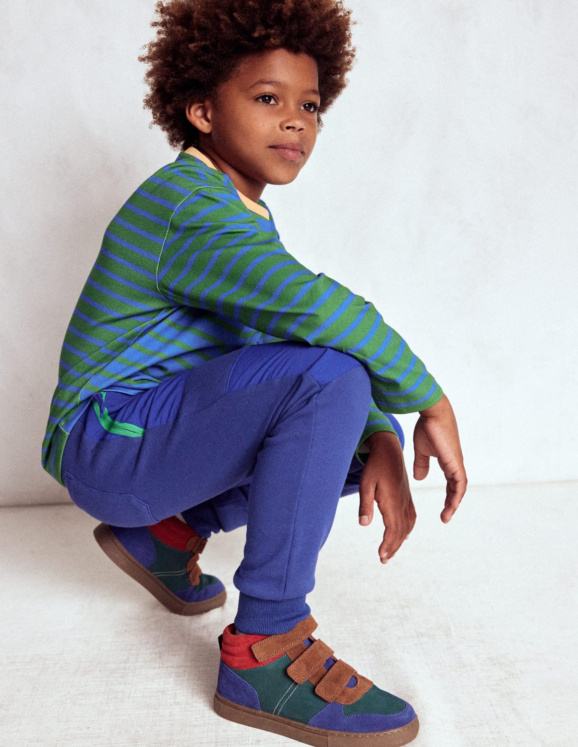 Reinforced knees mean these tapered joggers can keep up with every adventure (yep. even knee slides in the park). They’re cut from soft cotton and simply pull on. so your Mini can be playdate-ready in no time.Less