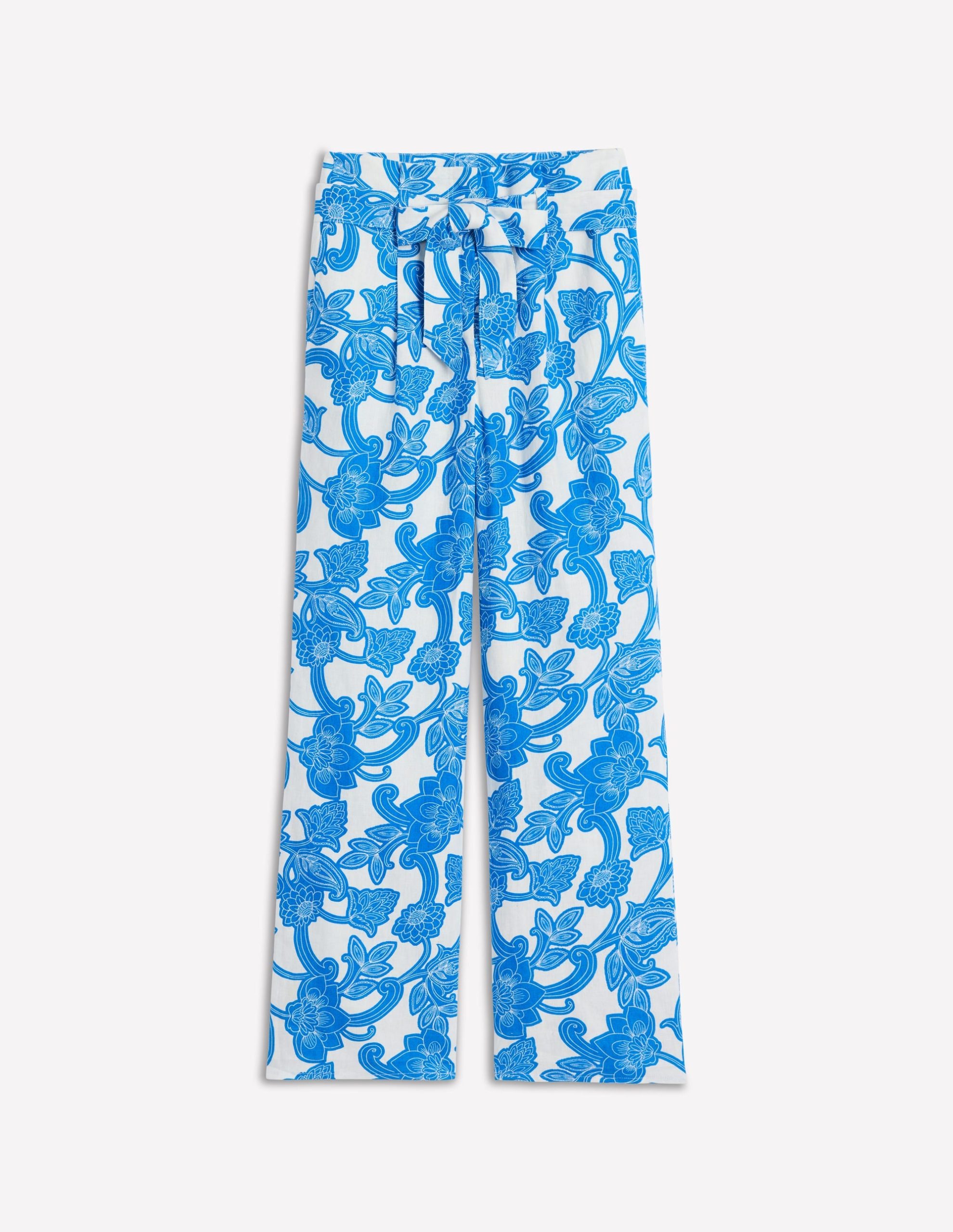 Belted Linen Pants-Cerulean Blue. Paisley Whirl