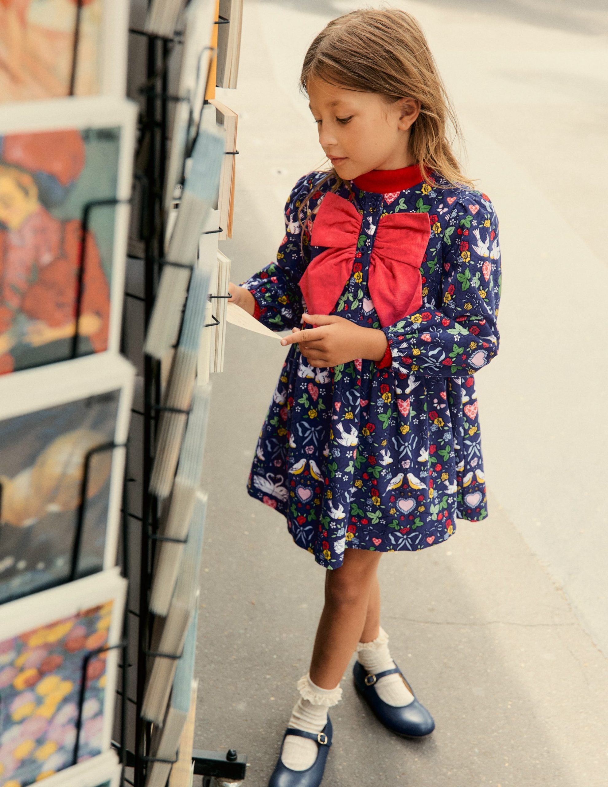 ‘Tis the season?? to get excited about party dresses. This gathered cord style has a button-up top adorned with a giant bow. The swan print is charming enough for Christmas and beyond. Pair with a bright roll neck and a hint of mischief.