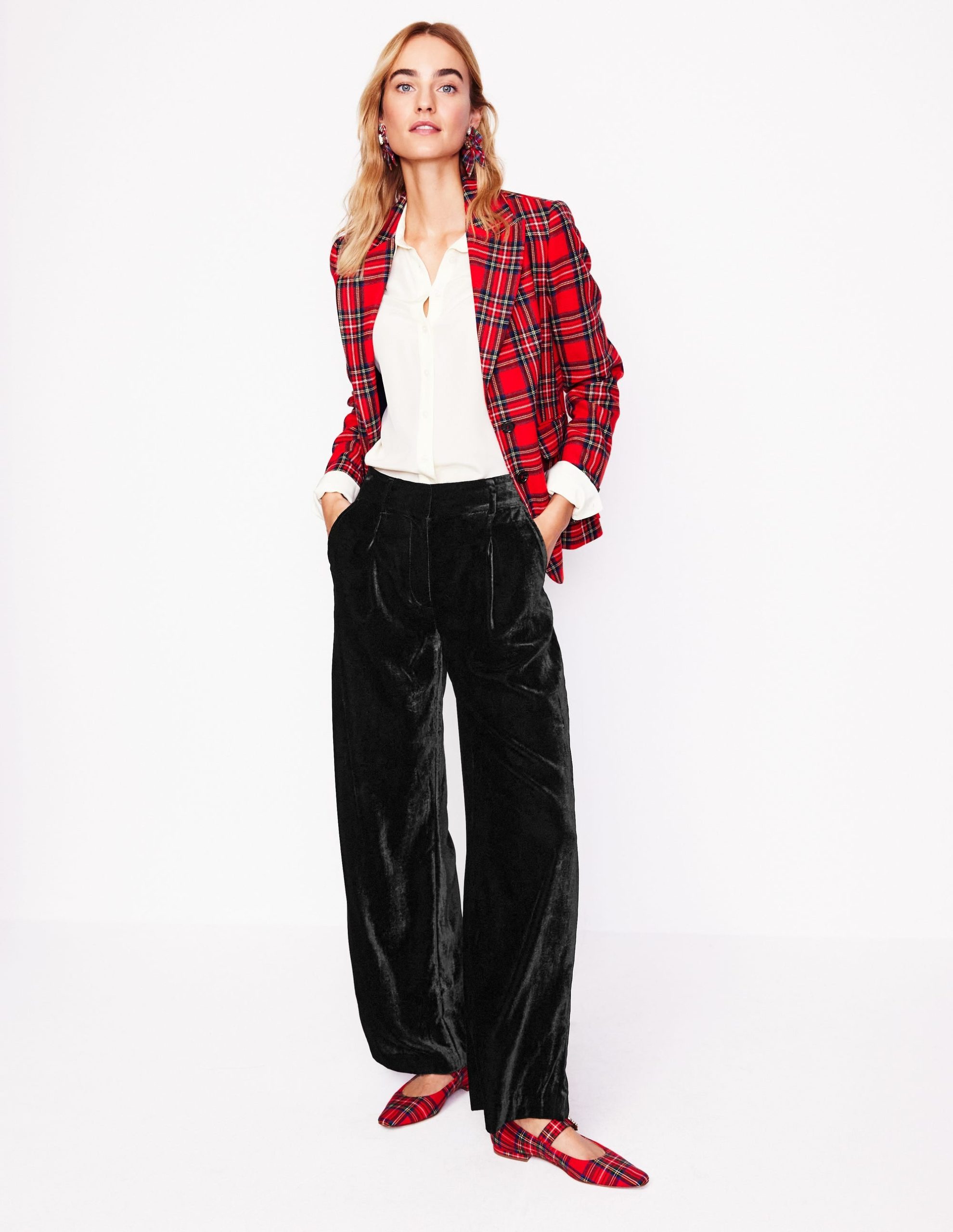 Our Chiswick velvet trousers are fitted through the hips and fall into wide-cut legs. They come in an array of autumnal shades??perfect for long walks in the park