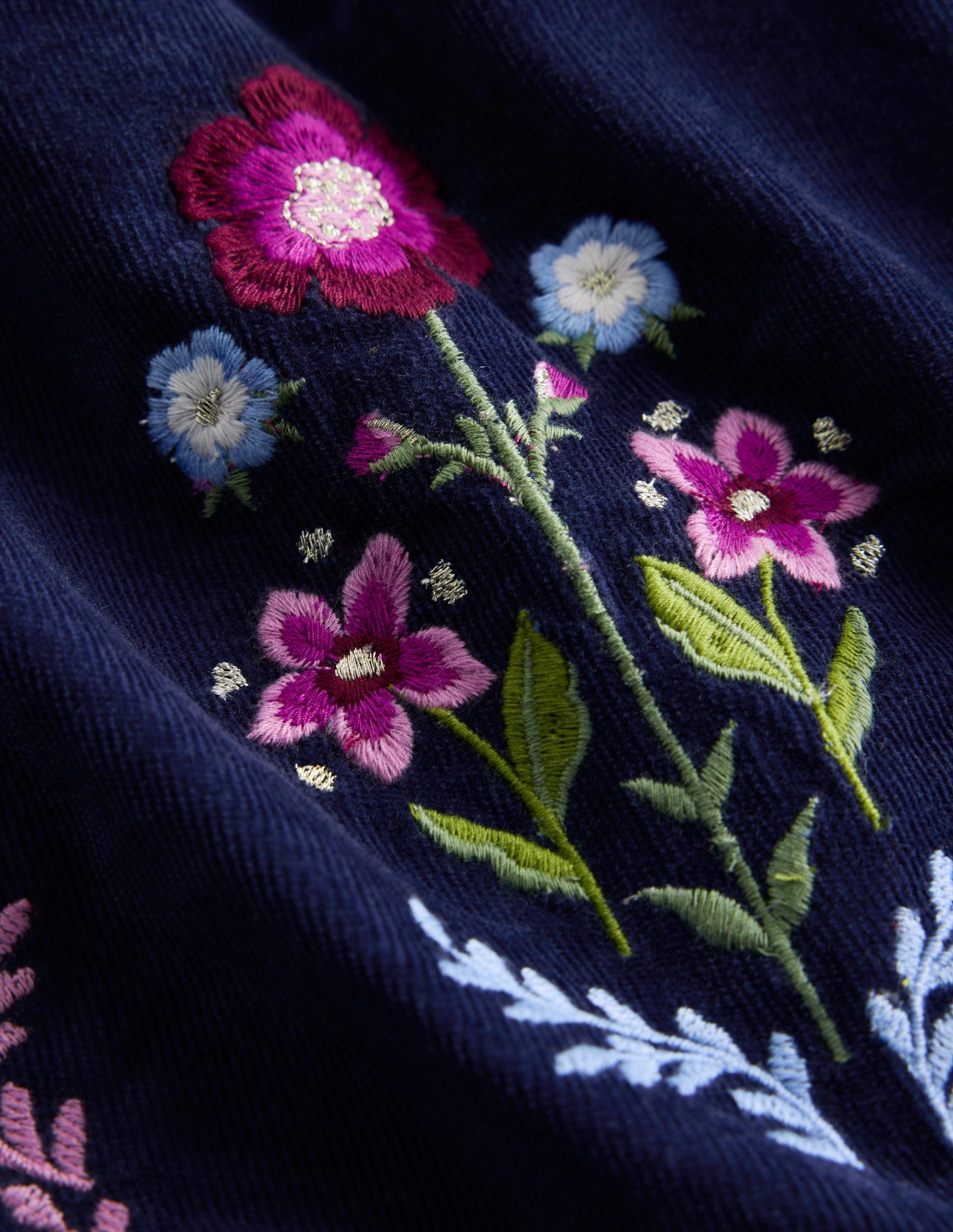 If you’re looking for a dress to treasure for years (and generations) to come. this adorable cord style is the one. It has a sparkly embroidered design. blouson sleeves and gentle gathers finished with ric rac trim.