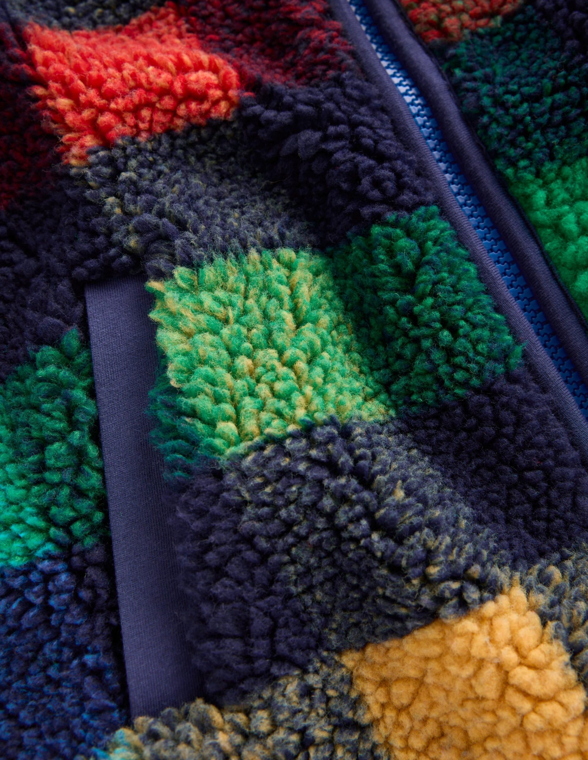 This borg jacket is as cosy as a hug (maybe even cosier). The deep pockets. high neck and dipped hem work together to keep pesky chills out. With stripes. dinos and foxes among other playful designs. Minis can choose their favourite.