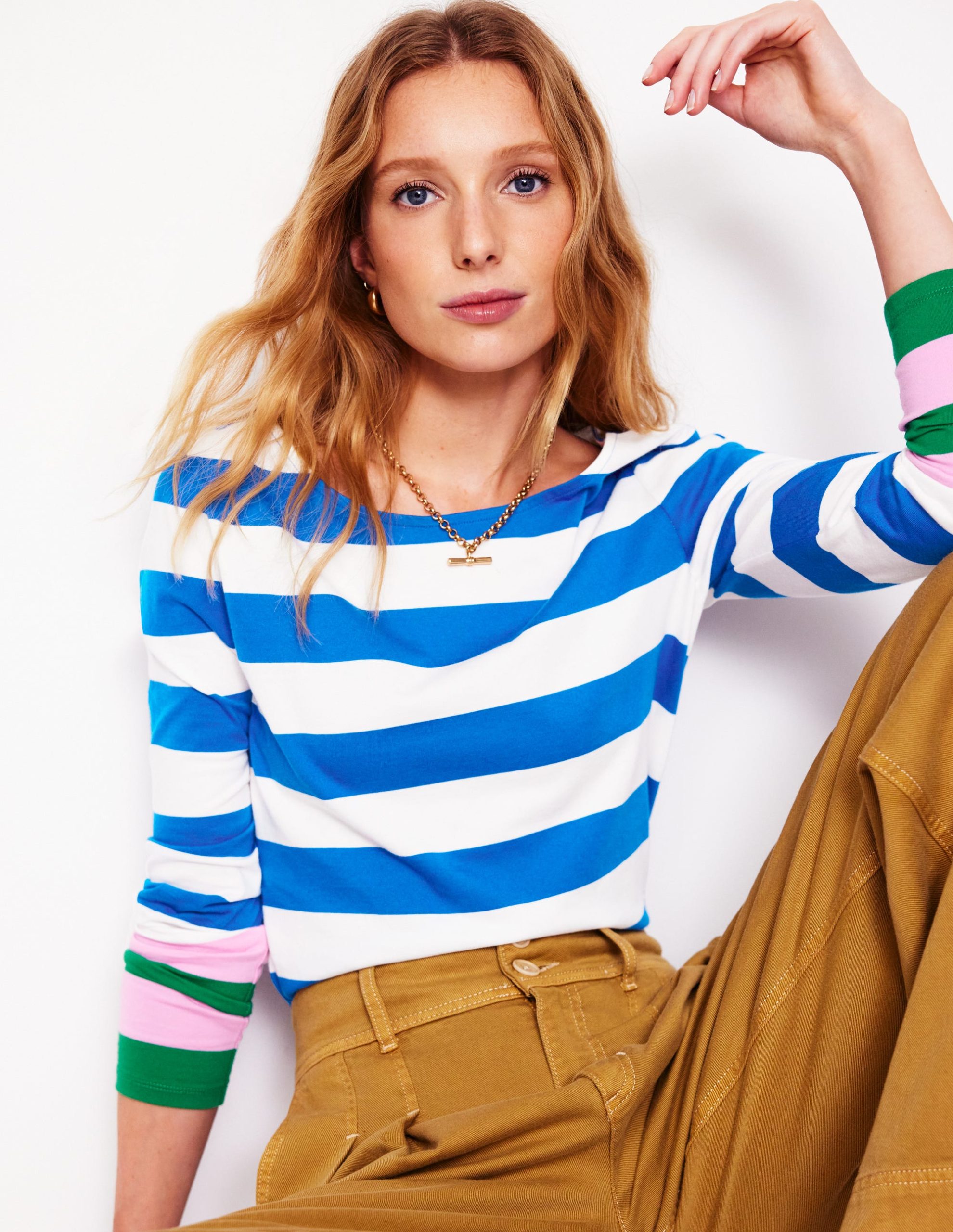 Ella Long Sleeve Breton-Gallery Blue. Emerald Cuff