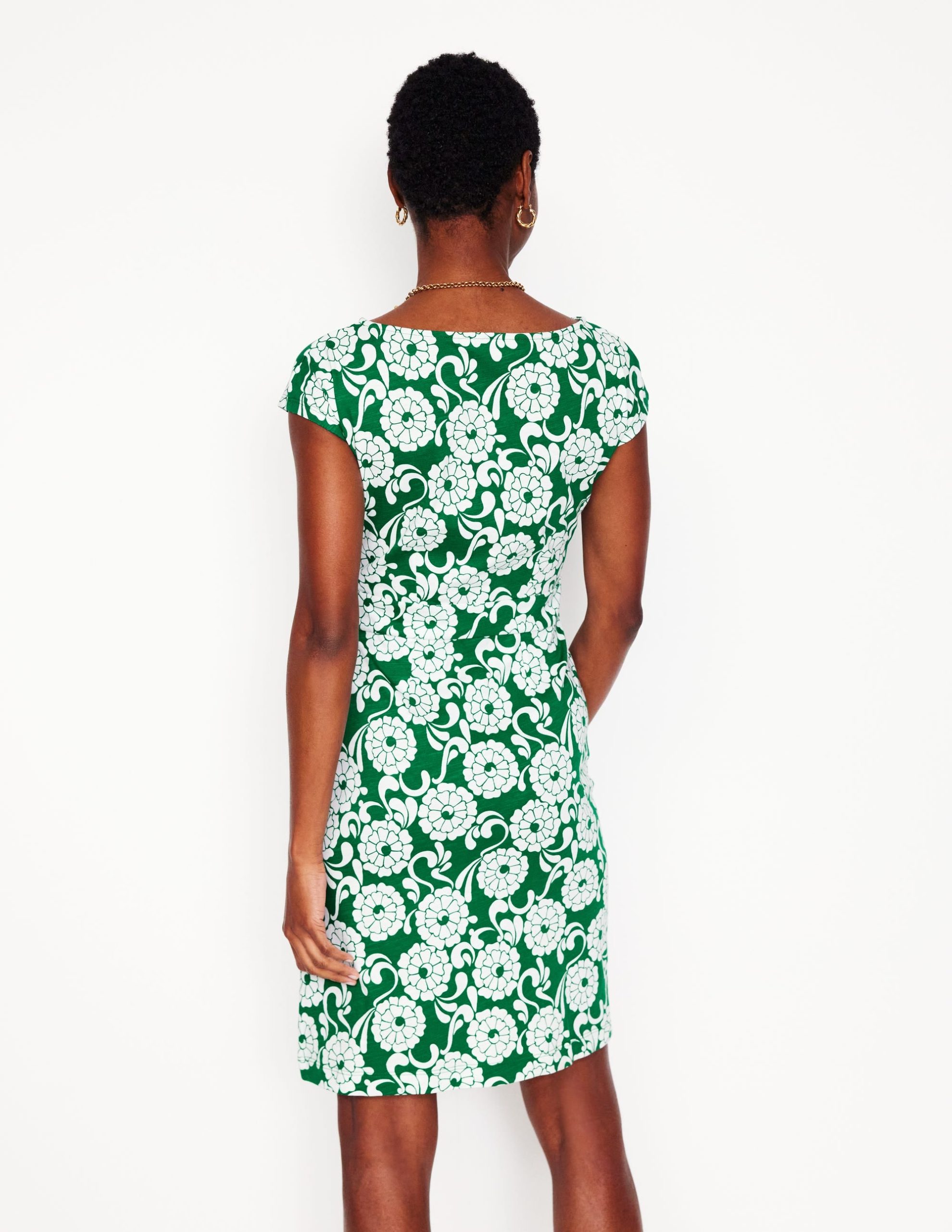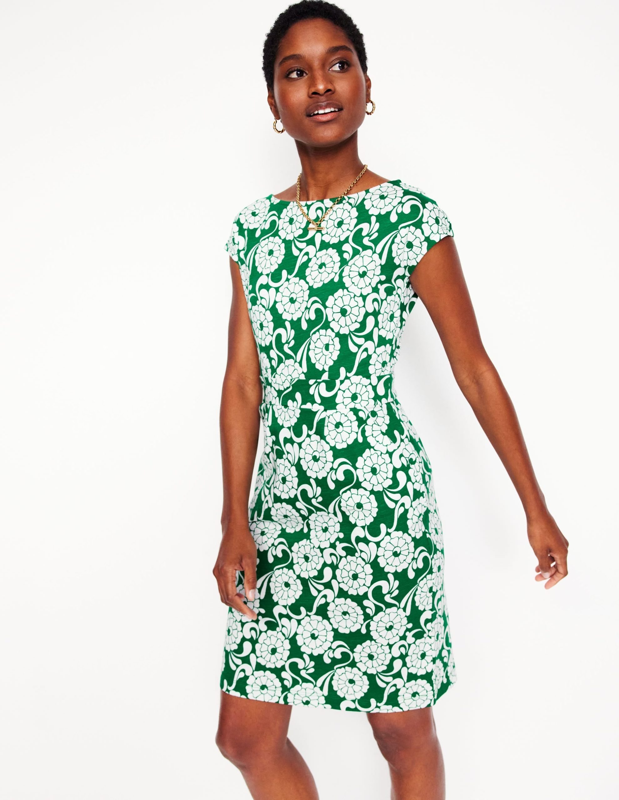 Florrie Jersey Dress-Rich Emerald. Blossom Swirl