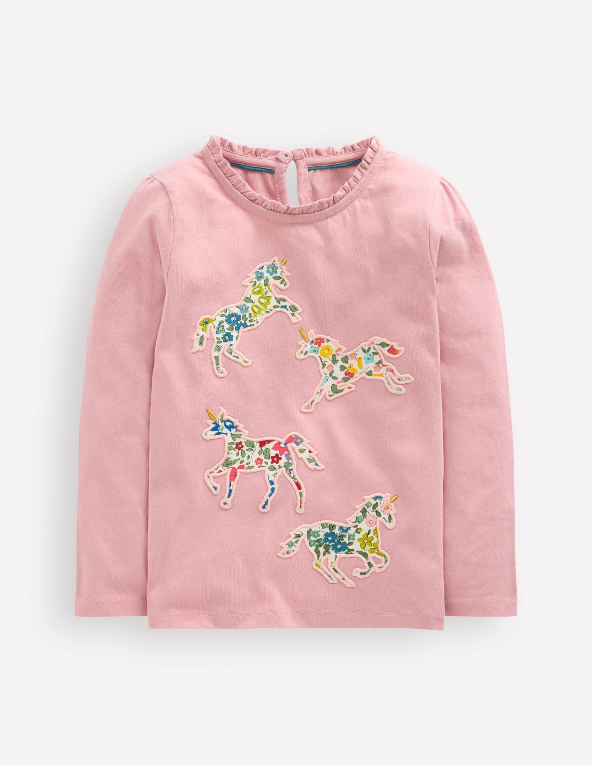 Our cotton frill neck appliqu?? T-shirt has 3D details Minis will love. Choose from hearts. flowers. unicorns or dinos (if you can’t choose. collect them all).