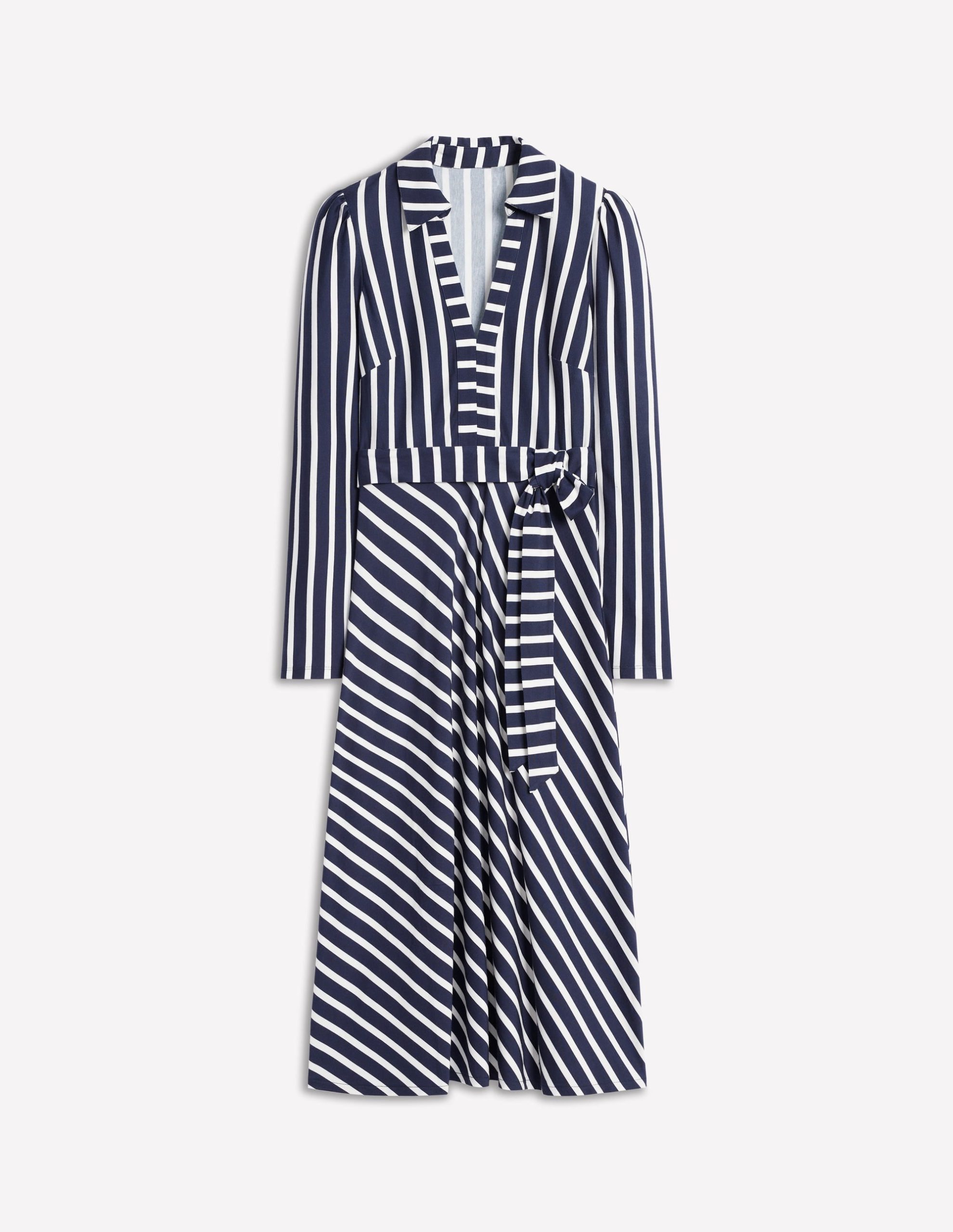 Imogen Collared Jersey Dress-French Navy and Ivory Stripe