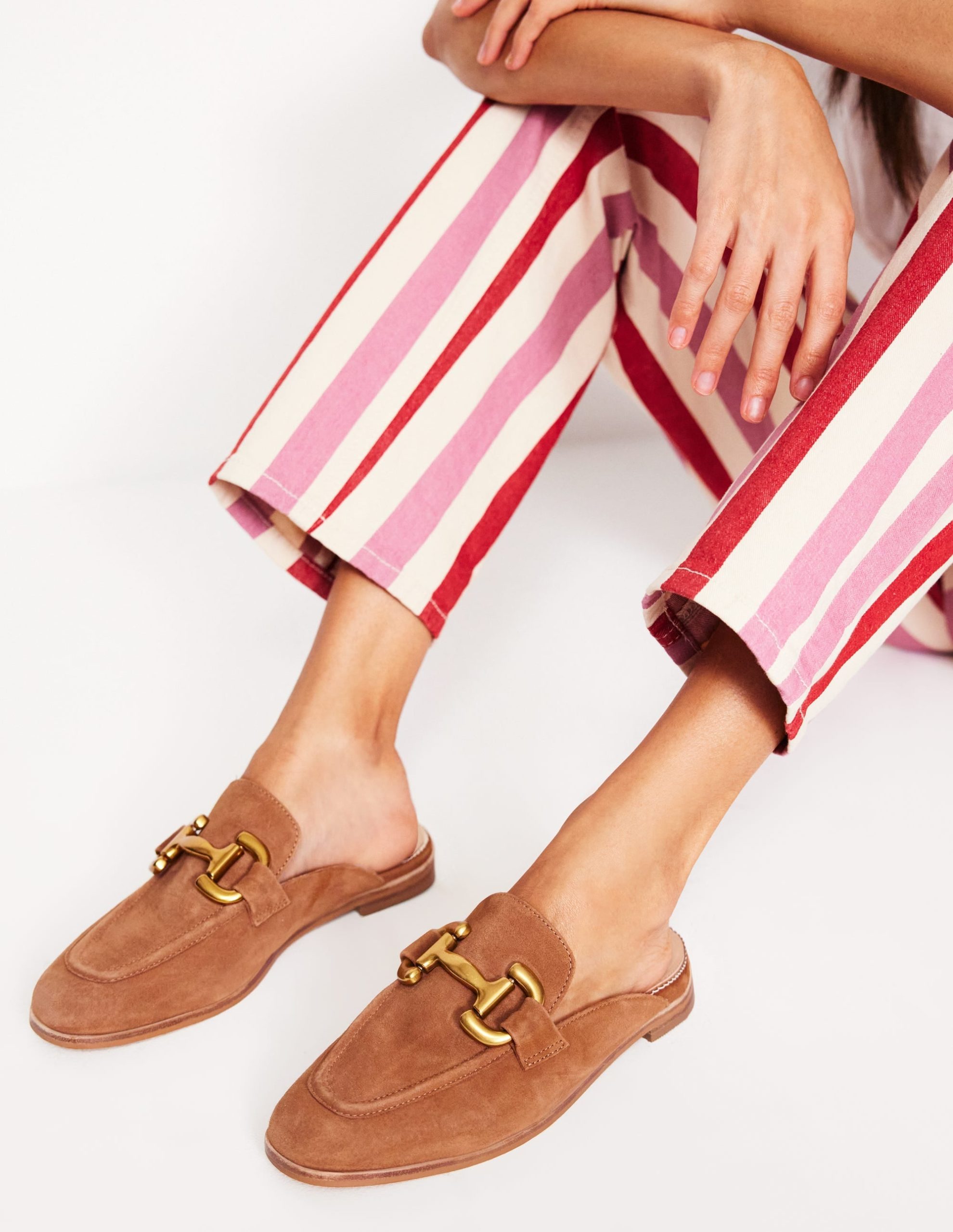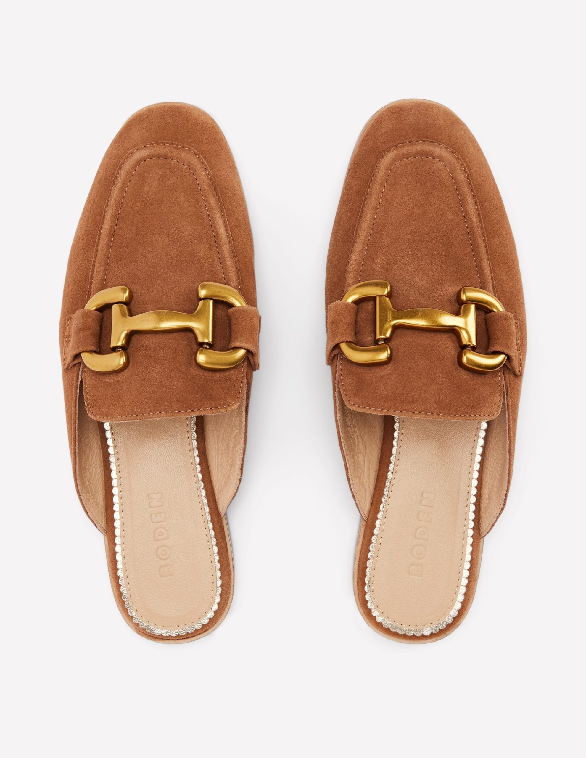 We love our Iris loafers so much that we couldn’t bear the thought of being without them in warmer weather. That’s where these mules come in. Made from leather. they’re embellished with the classic horse-bit snaffle on the front.