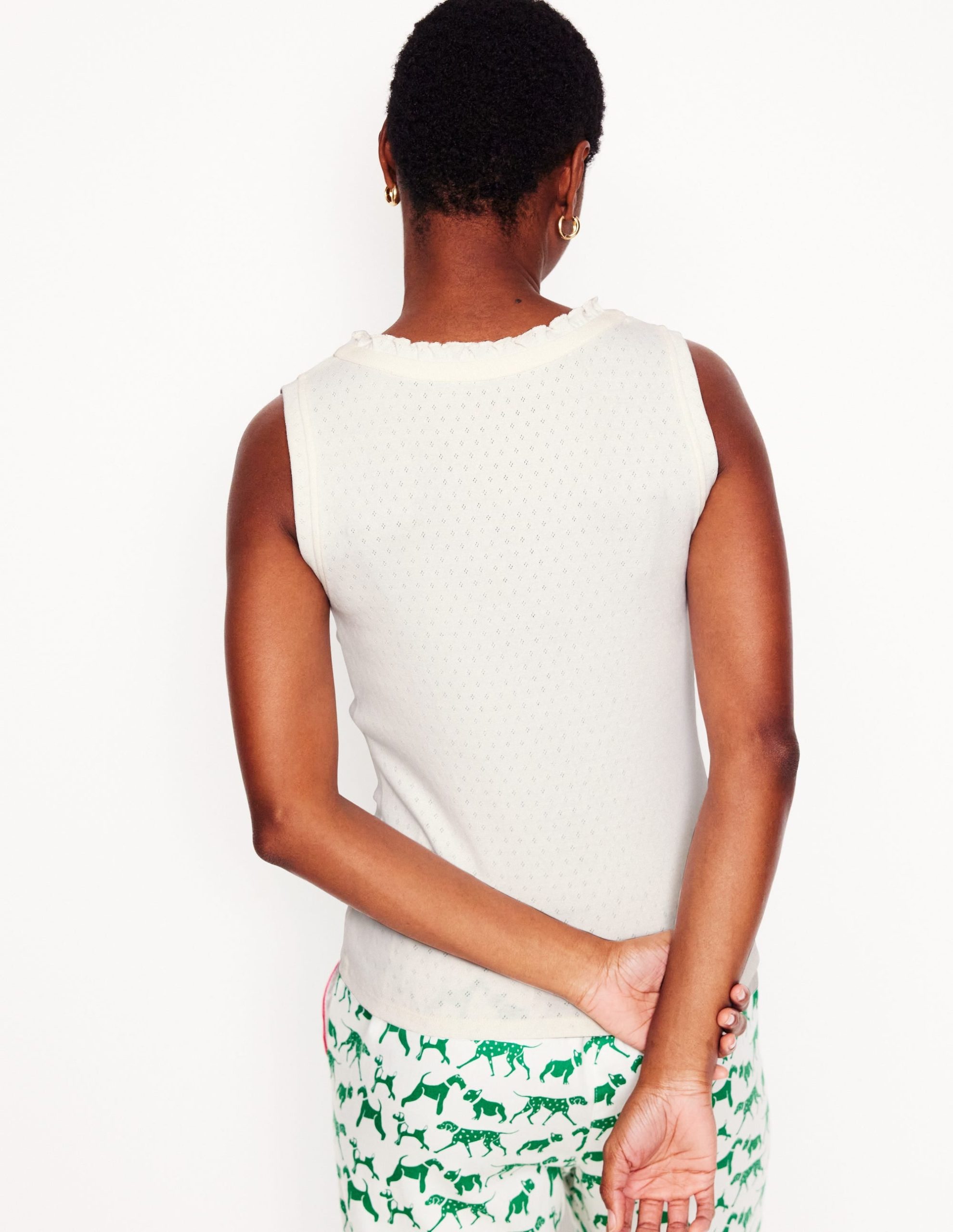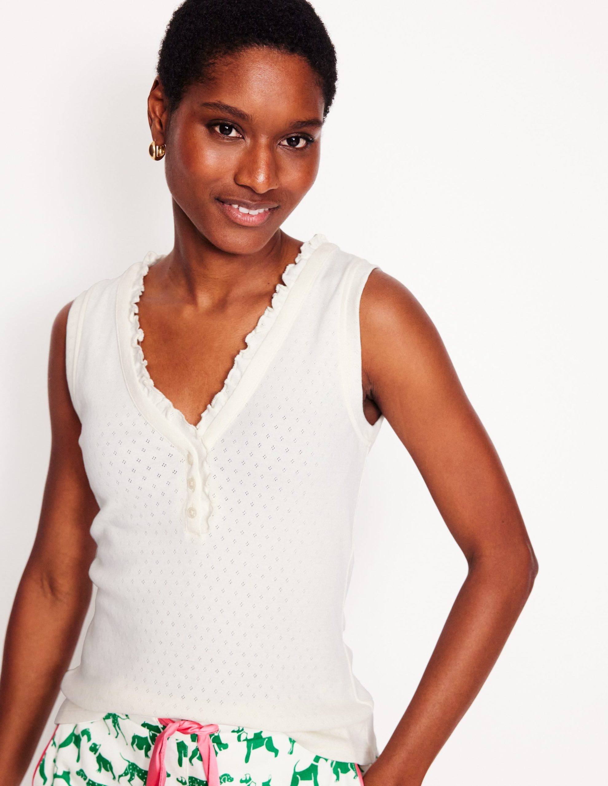 Soft. breathable cotton and a frilled neckline make our Henley pyjama vest a stylish bedtime choice.