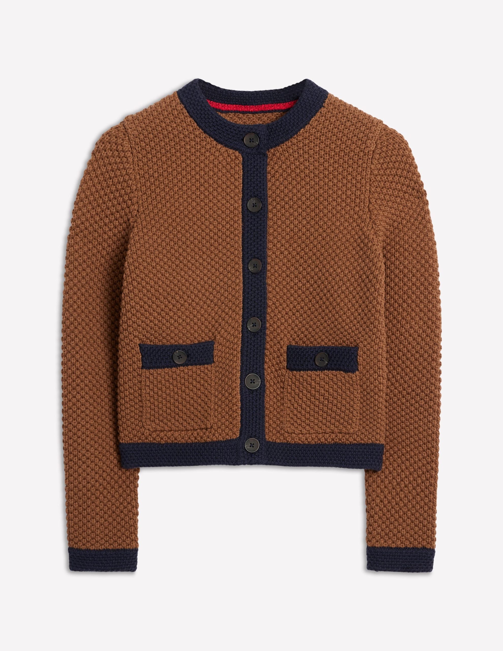 We’ve whipped up a knitted cardigan-jacket hybrid with Libby. Thanks to the soft weave and solid structure it’s a year-round must-have. Wear it alone now or under a coat come winter (sorry to mention the W-word).