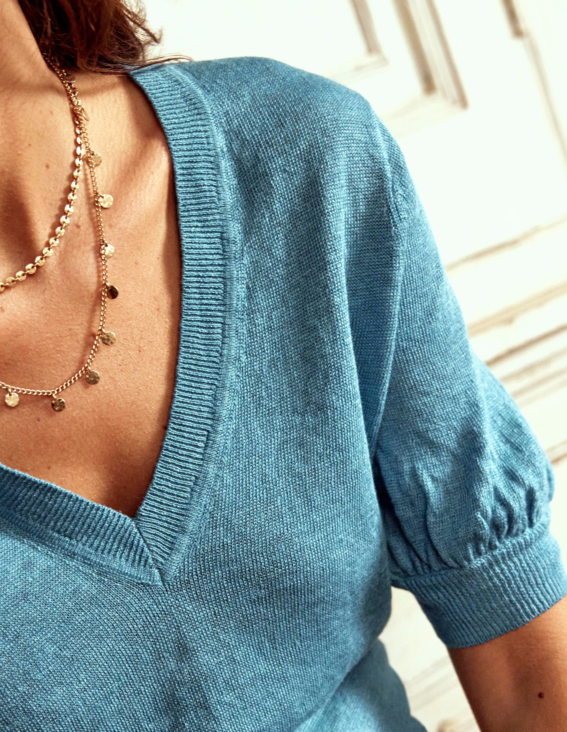 Be the first to review “Liv V-Neck Linen T-Shirt-Duck Egg Blue”