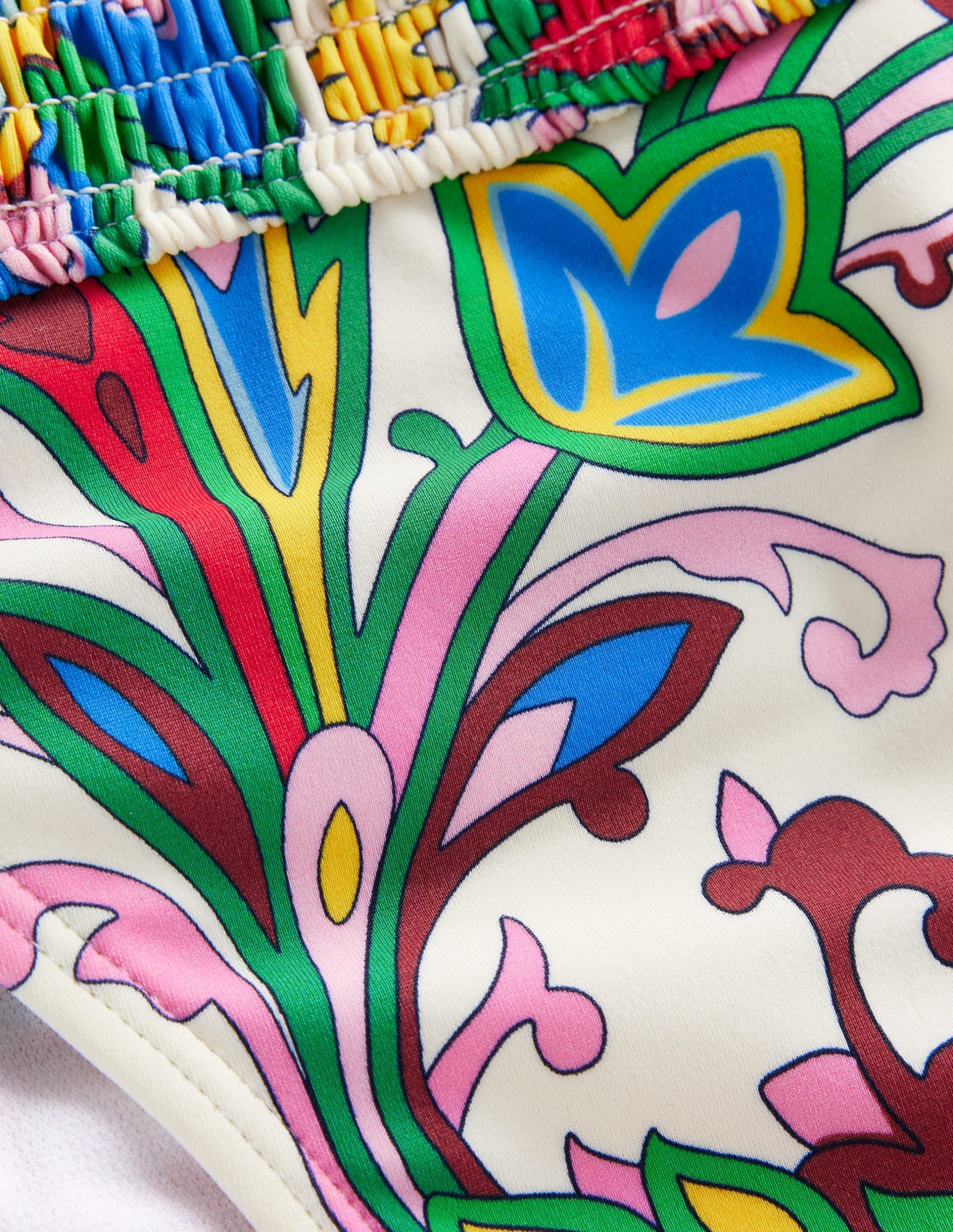 Milos Smocked Bikini Bottoms-Ivory. Paisley Azure