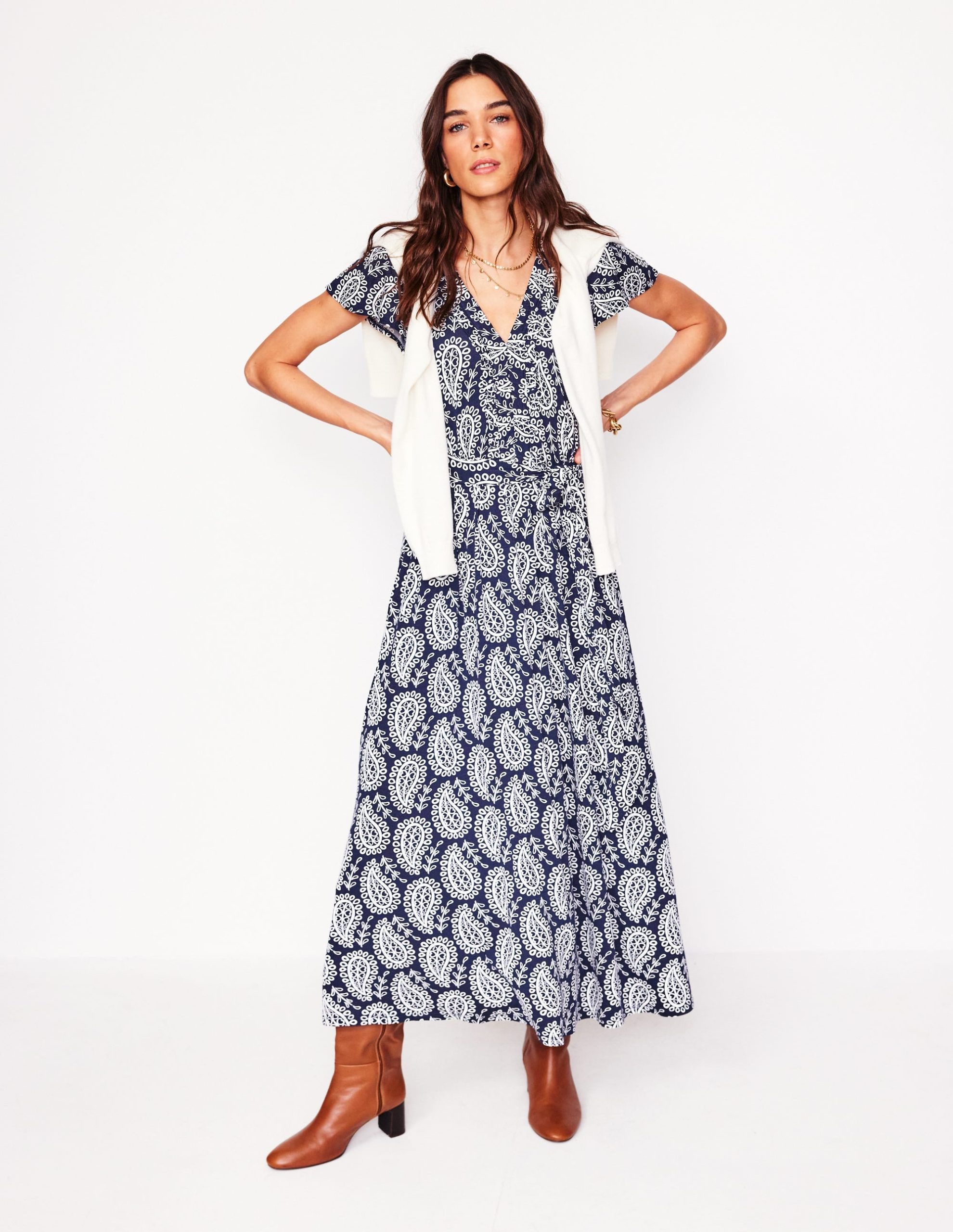Nicola Jersey Tea Dress-French Navy. Paisley Heart