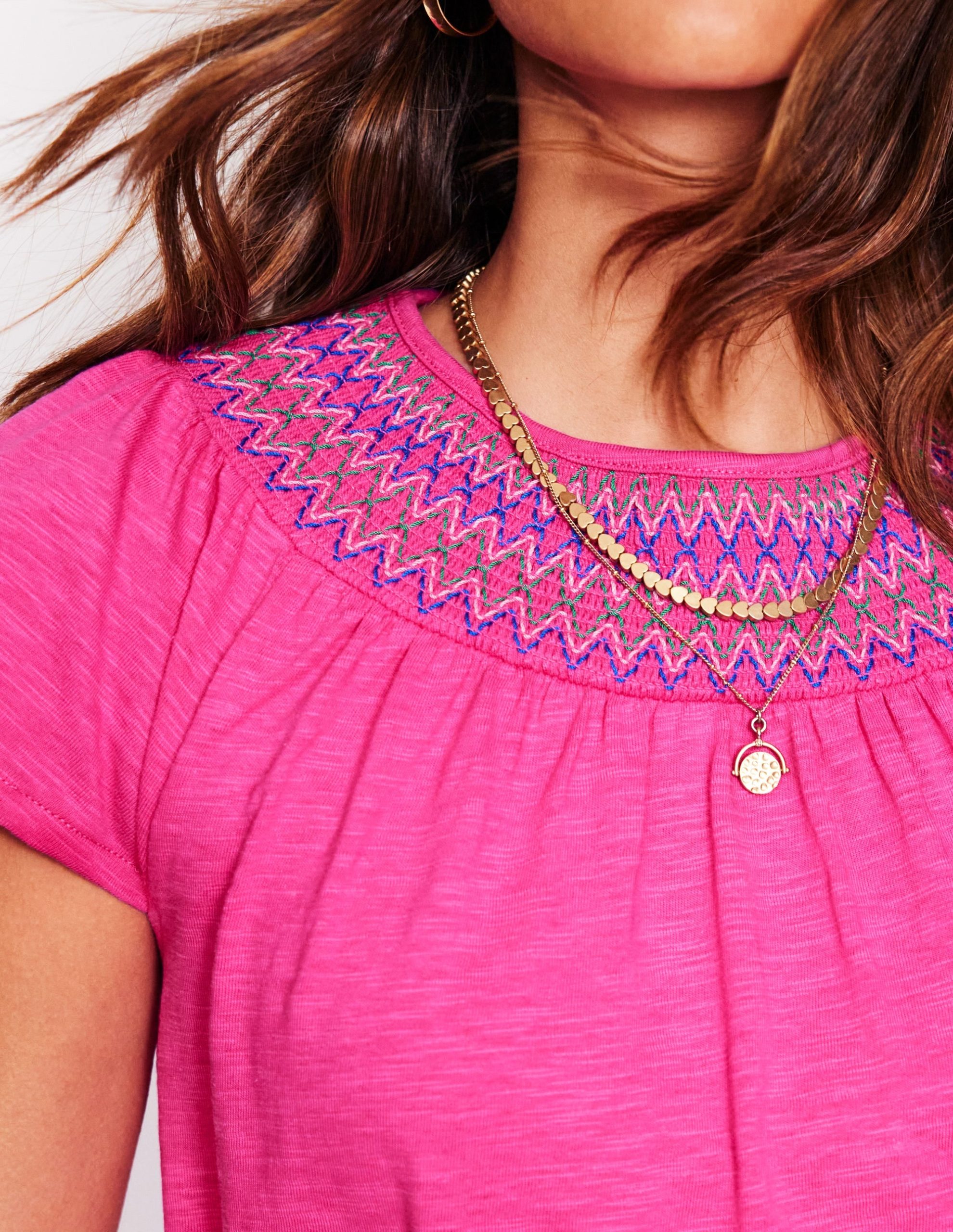 Nina Smocked T-Shirt Dress-Cosmos Pink