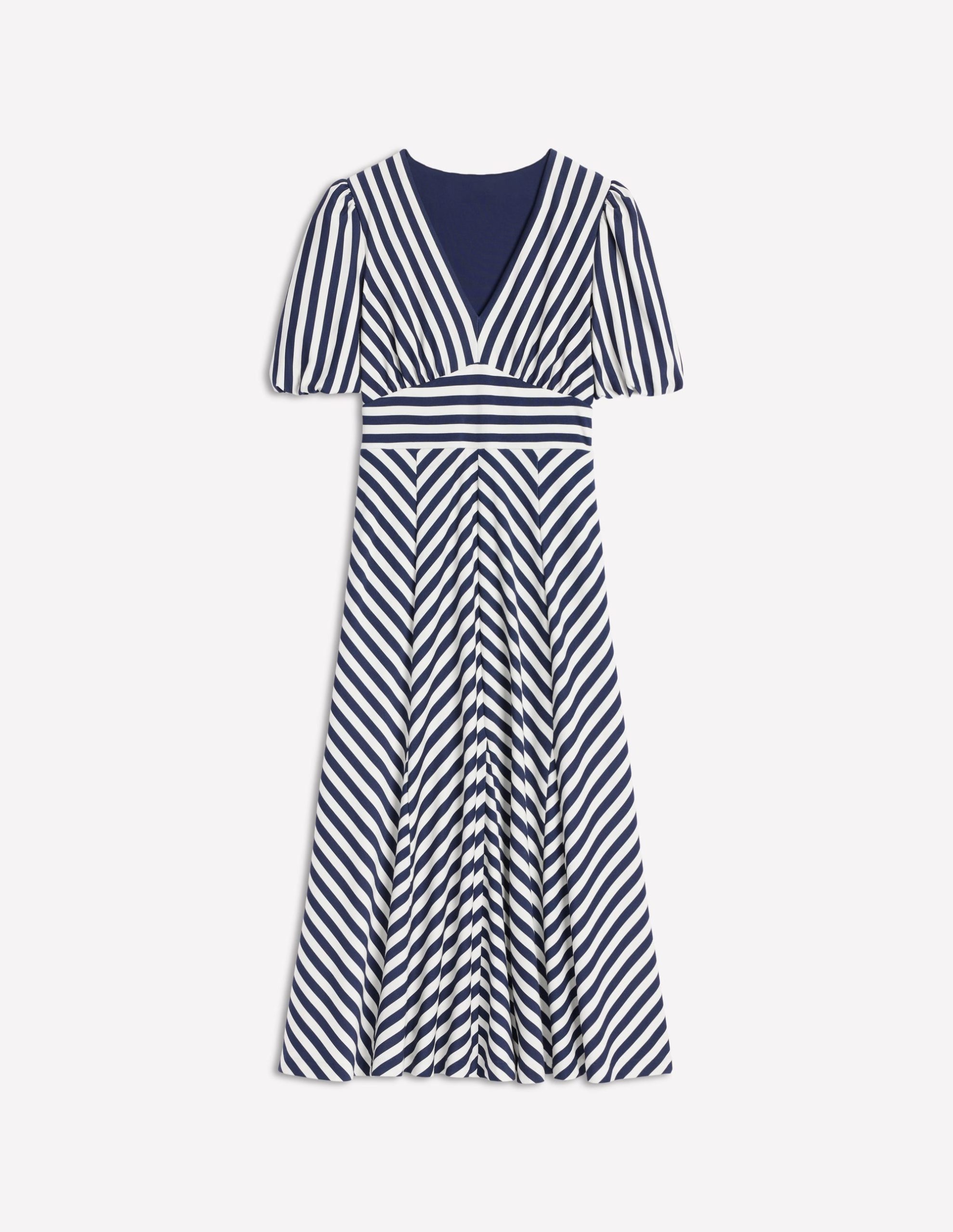 Ponte Panelled Tea Dress-French Navy. Ivory Stripe