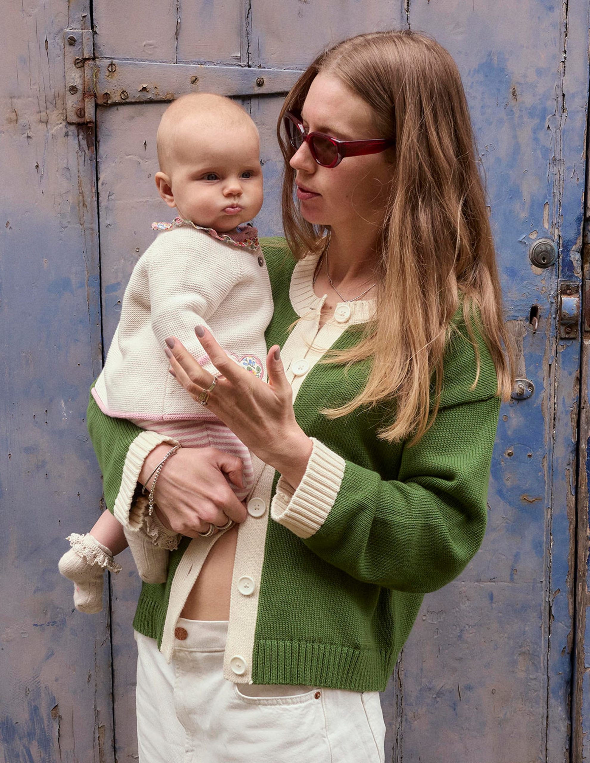 All the adorable features in one easy outfit. This knitted play set is spun from soft cotton with a floral frilly neck and matching appliqu?? hearts. The stripy bottoms have an elasticated waistband and ribbed cuffs for easy changes and comfort.